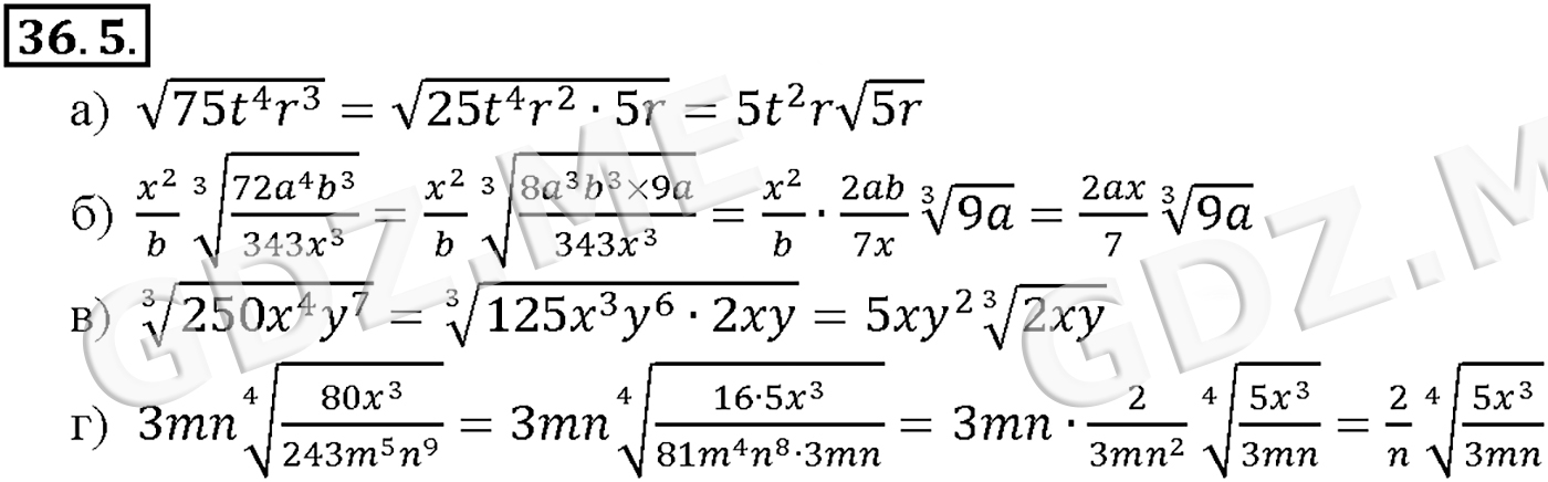 Подробный вариант решения из решебника (ГДЗ): Задание номер 36-5 (Глава 5 Производная. Глава 6 Степени и корни. Степенные функции. §36. Преобразование выражений, содержащих радикалы) по предмету Алгебра, за 10 класс, авторы учебника Мордкович, Александрова.