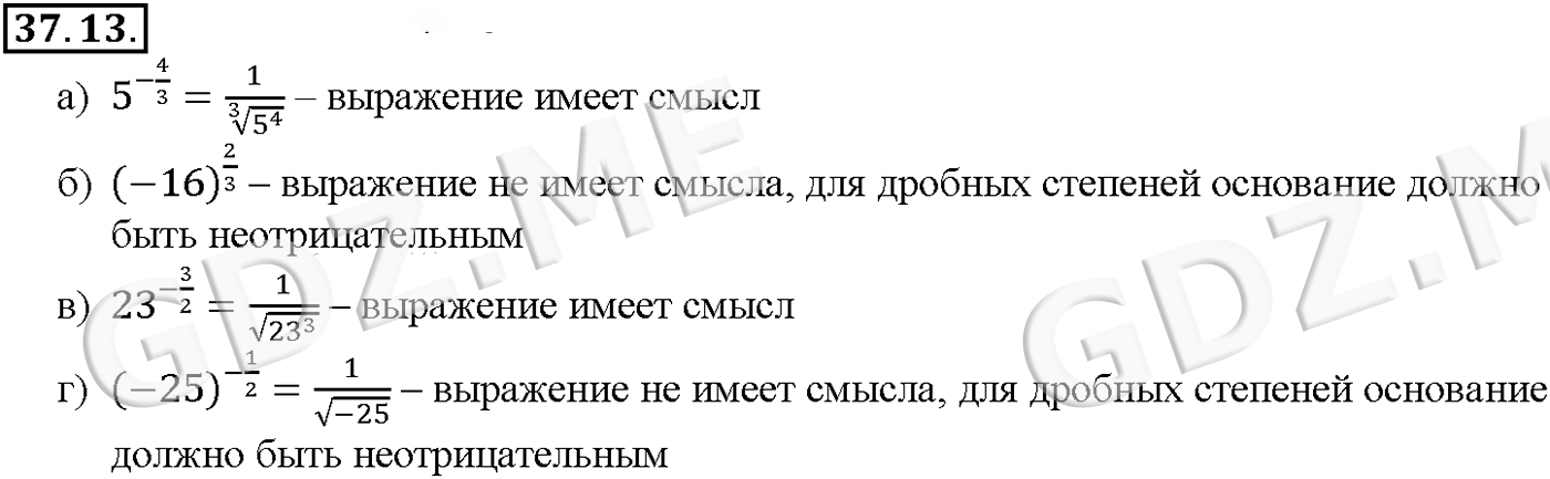 Подробный вариант решения из решебника (ГДЗ): Задание номер 37-13 (Глава 5 Производная. Глава 6 Степени и корни. Степенные функции. §37. Обобщение понятия о показателе степени) по предмету Алгебра, за 10 класс, авторы учебника Мордкович, Александрова.