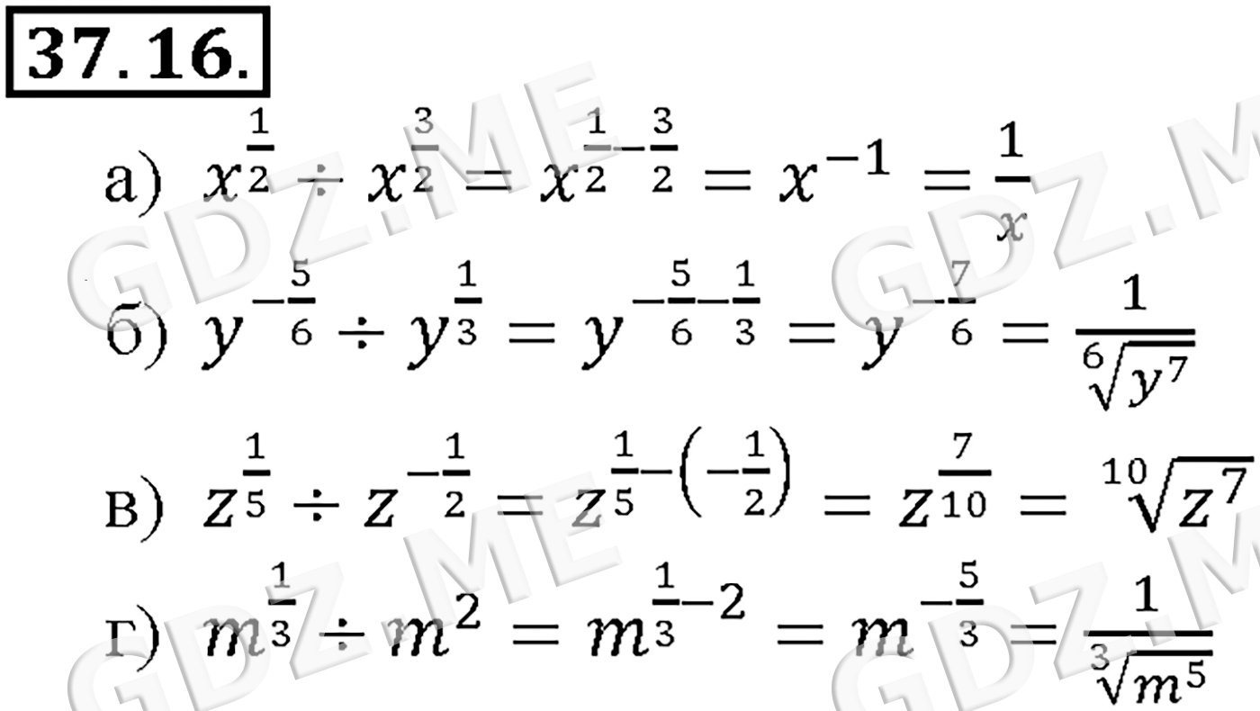 Подробный вариант решения из решебника (ГДЗ): Задание номер 37-16 (Глава 5 Производная. Глава 6 Степени и корни. Степенные функции. §37. Обобщение понятия о показателе степени) по предмету Алгебра, за 10 класс, авторы учебника Мордкович, Александрова.