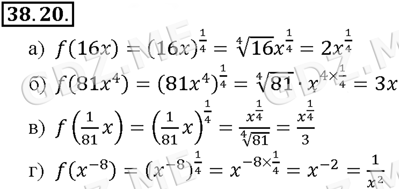 Подробный вариант решения из решебника (ГДЗ): Задание номер 38-20 (Глава 5 Производная. Глава 6 Степени и корни. Степенные функции. §38. Степенные функции, их свойства и графики) по предмету Алгебра, за 10 класс, авторы учебника Мордкович, Александрова.