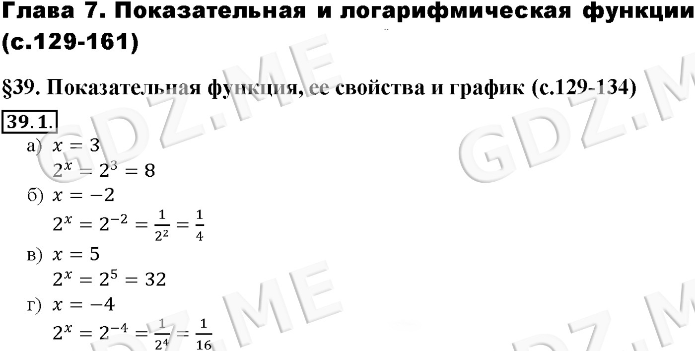 Подробный вариант решения из решебника (ГДЗ): Задание номер 39-1 (Глава 6 Степени и корни. Степенные функции. Глава 7 Показательная и логарифмическая функции. §39. Показательная функция, ее свойства и график) по предмету Алгебра, за 10 класс, авторы учебника Мордкович, Александрова.