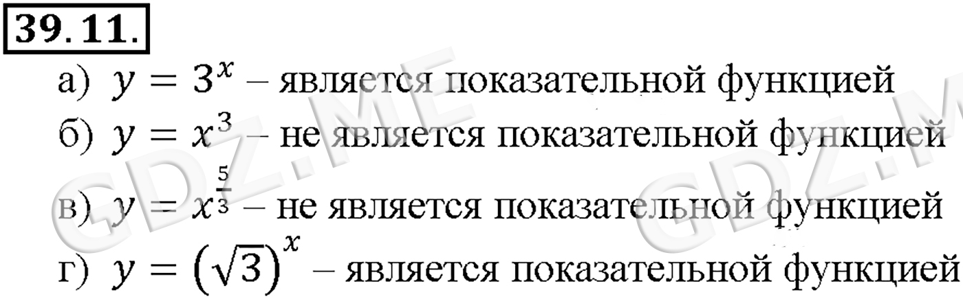 Подробный вариант решения из решебника (ГДЗ): Задание номер 39-11 (Глава 6 Степени и корни. Степенные функции. Глава 7 Показательная и логарифмическая функции. §39. Показательная функция, ее свойства и график) по предмету Алгебра, за 10 класс, авторы учебника Мордкович, Александрова.