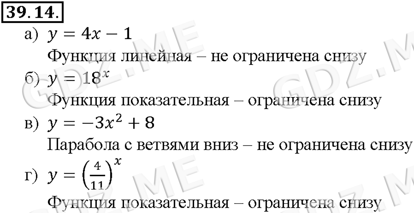Подробный вариант решения из решебника (ГДЗ): Задание номер 39-14 (Глава 6 Степени и корни. Степенные функции. Глава 7 Показательная и логарифмическая функции. §39. Показательная функция, ее свойства и график) по предмету Алгебра, за 10 класс, авторы учебника Мордкович, Александрова.