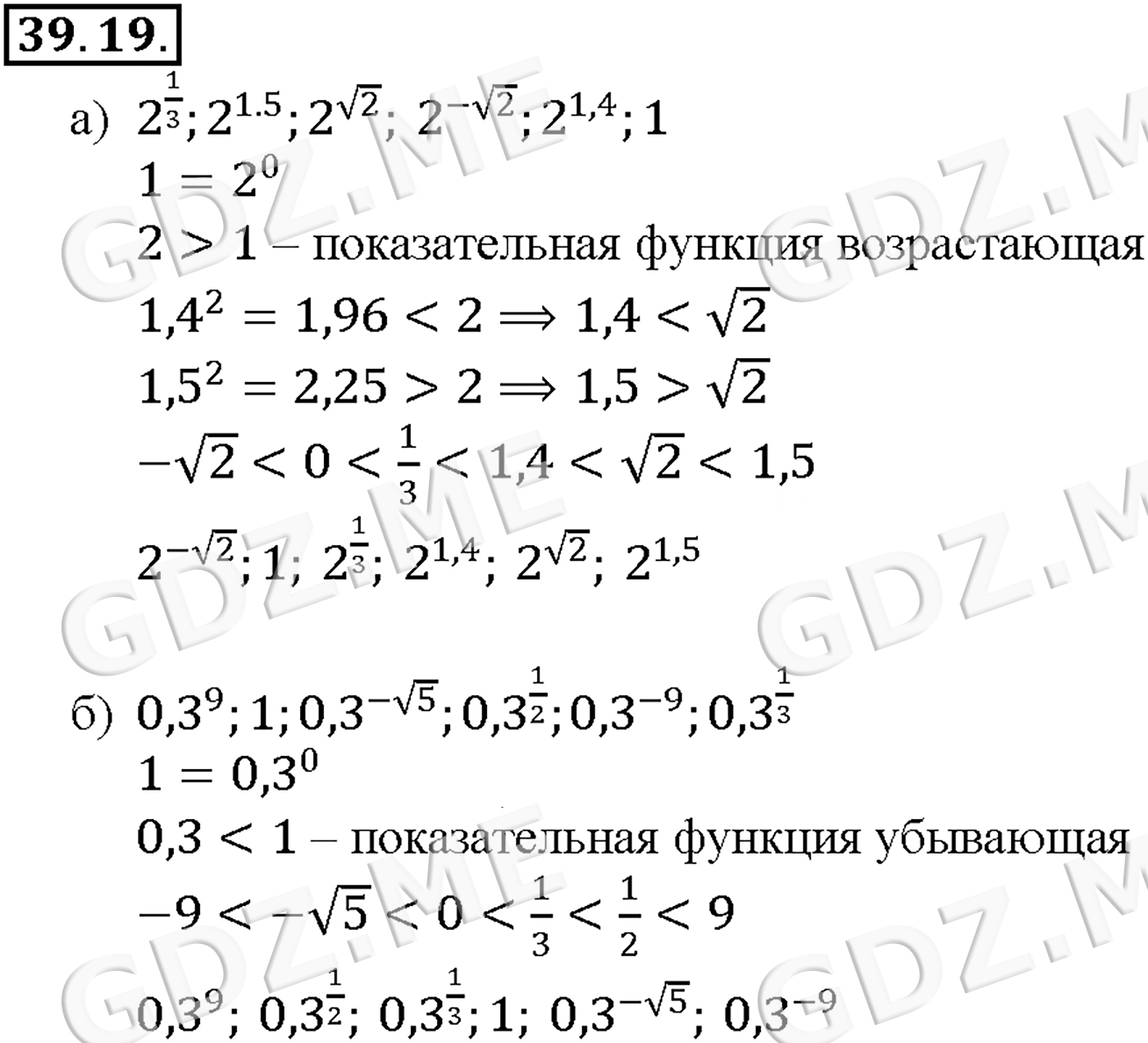 Подробный вариант решения из решебника (ГДЗ): Задание номер 39-19 (Глава 6 Степени и корни. Степенные функции. Глава 7 Показательная и логарифмическая функции. §39. Показательная функция, ее свойства и график) по предмету Алгебра, за 10 класс, авторы учебника Мордкович, Александрова.