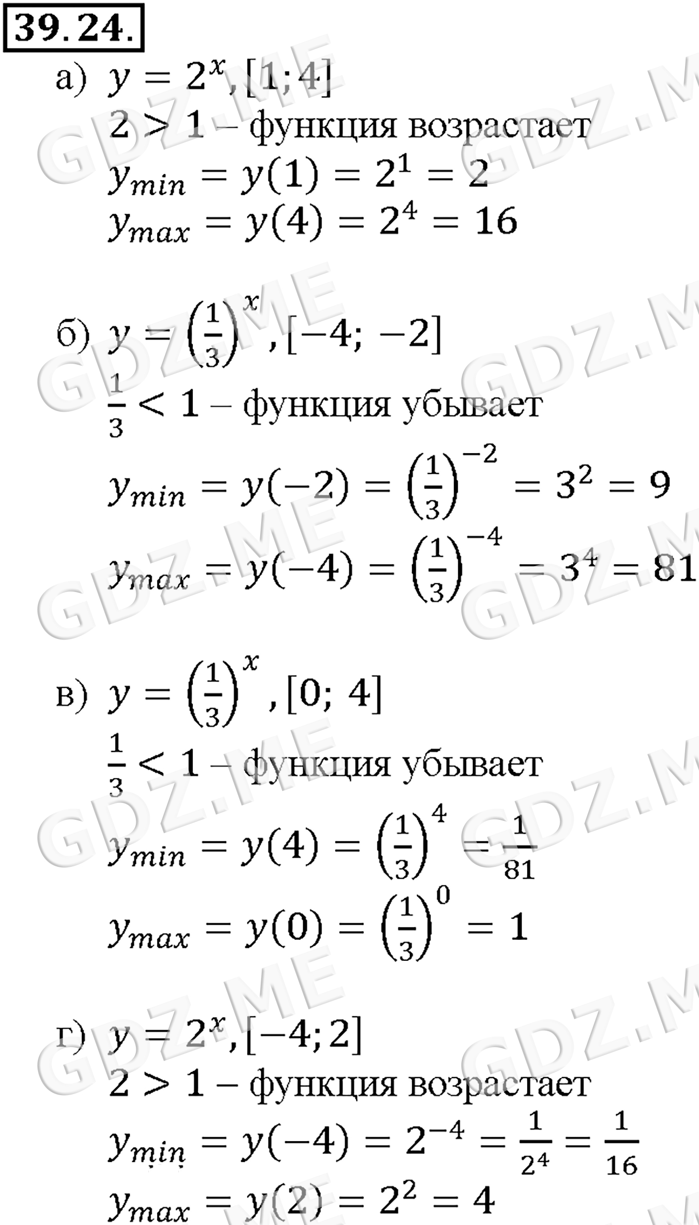 Подробный вариант решения из решебника (ГДЗ): Задание номер 39-24 (Глава 6 Степени и корни. Степенные функции. Глава 7 Показательная и логарифмическая функции. §39. Показательная функция, ее свойства и график) по предмету Алгебра, за 10 класс, авторы учебника Мордкович, Александрова.
