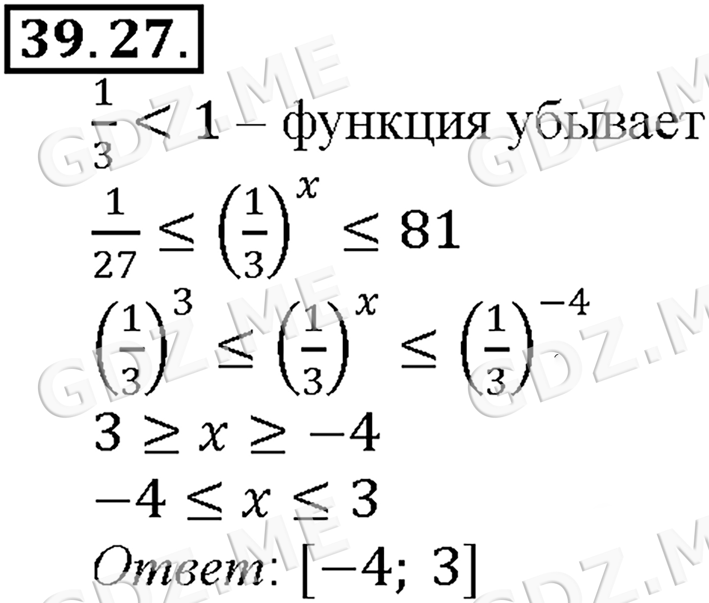 Подробный вариант решения из решебника (ГДЗ): Задание номер 39-27 (Глава 6 Степени и корни. Степенные функции. Глава 7 Показательная и логарифмическая функции. §39. Показательная функция, ее свойства и график) по предмету Алгебра, за 10 класс, авторы учебника Мордкович, Александрова.