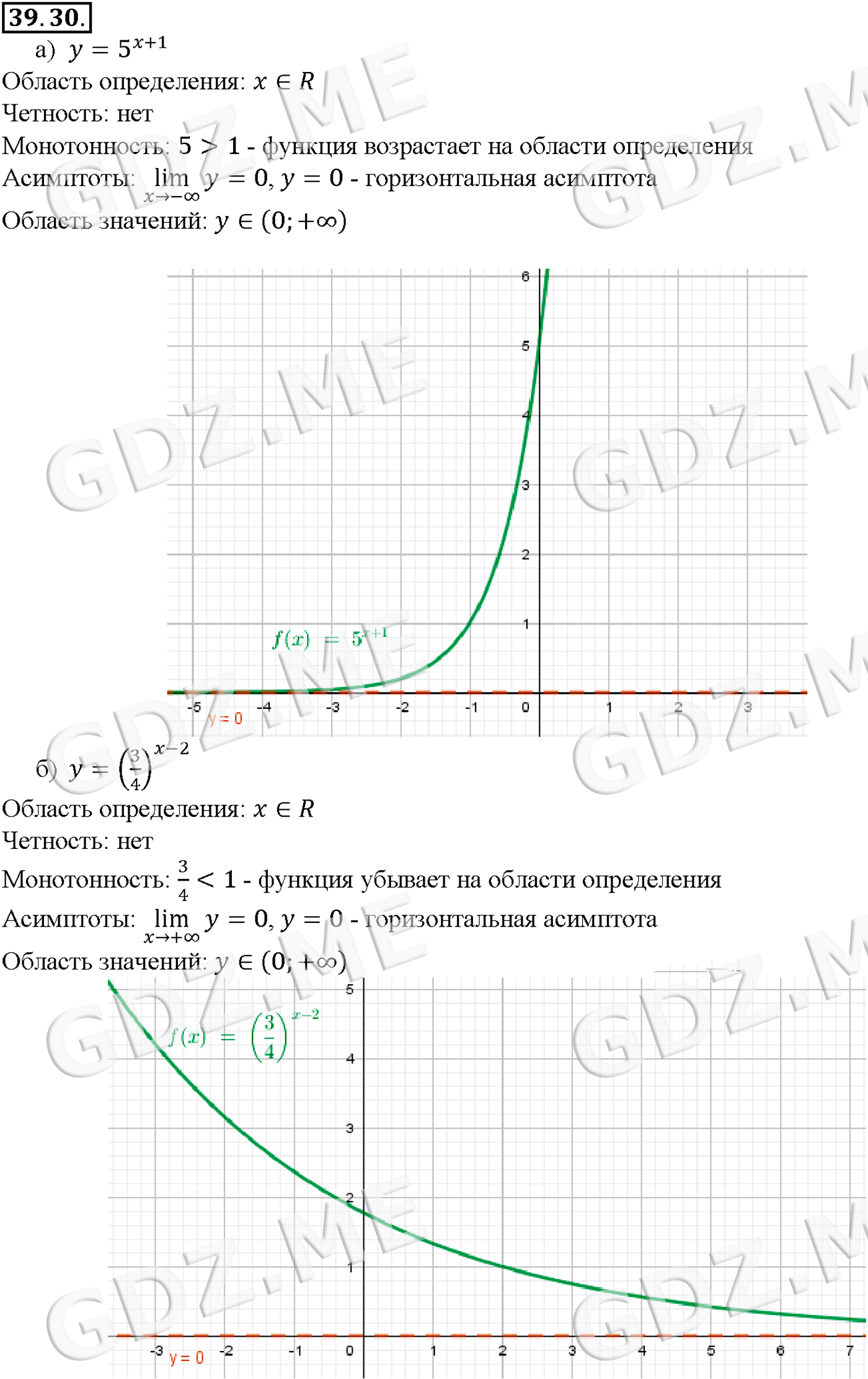 Подробный вариант решения из решебника (ГДЗ): Задание номер 39-30_1 (Глава 6 Степени и корни. Степенные функции. Глава 7 Показательная и логарифмическая функции. §39. Показательная функция, ее свойства и график) по предмету Алгебра, за 10 класс, авторы учебника Мордкович, Александрова.