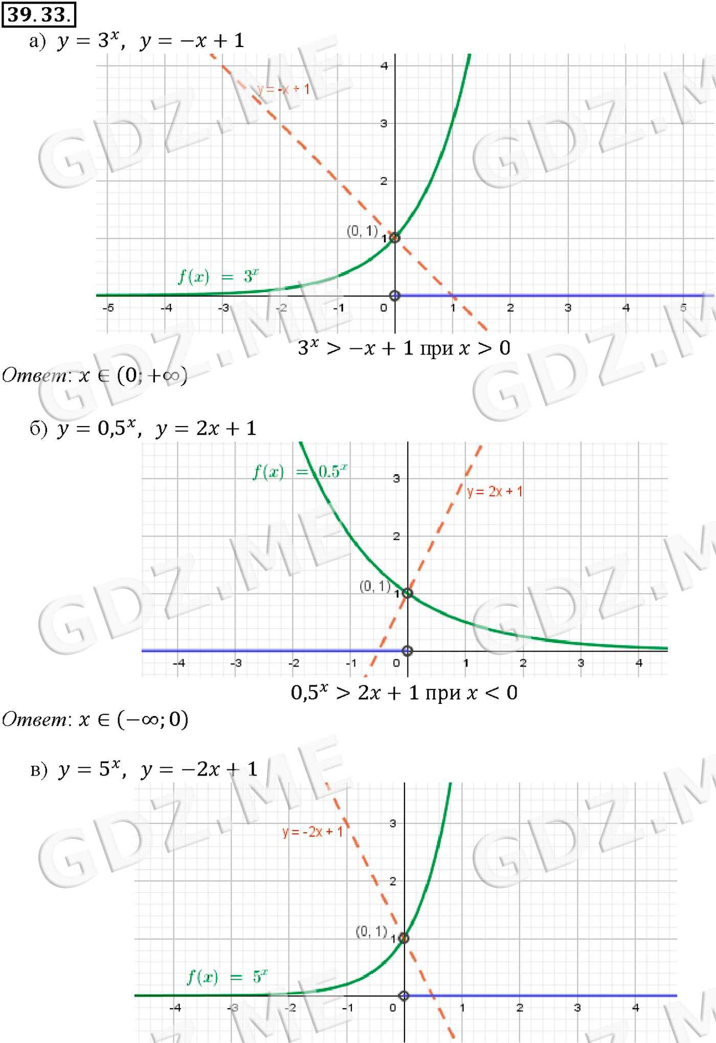 Подробный вариант решения из решебника (ГДЗ): Задание номер 39-33_1 (Глава 6 Степени и корни. Степенные функции. Глава 7 Показательная и логарифмическая функции. §39. Показательная функция, ее свойства и график) по предмету Алгебра, за 10 класс, авторы учебника Мордкович, Александрова.