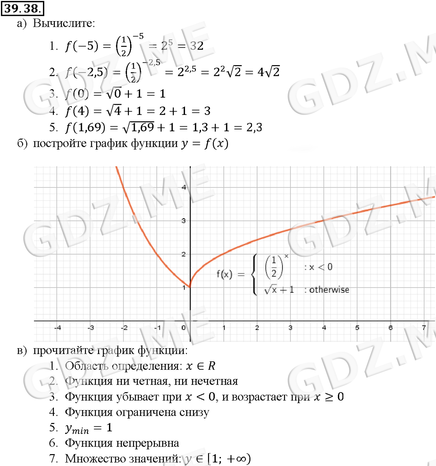 Подробный вариант решения из решебника (ГДЗ): Задание номер 39-38 (Глава 6 Степени и корни. Степенные функции. Глава 7 Показательная и логарифмическая функции. §39. Показательная функция, ее свойства и график) по предмету Алгебра, за 10 класс, авторы учебника Мордкович, Александрова.