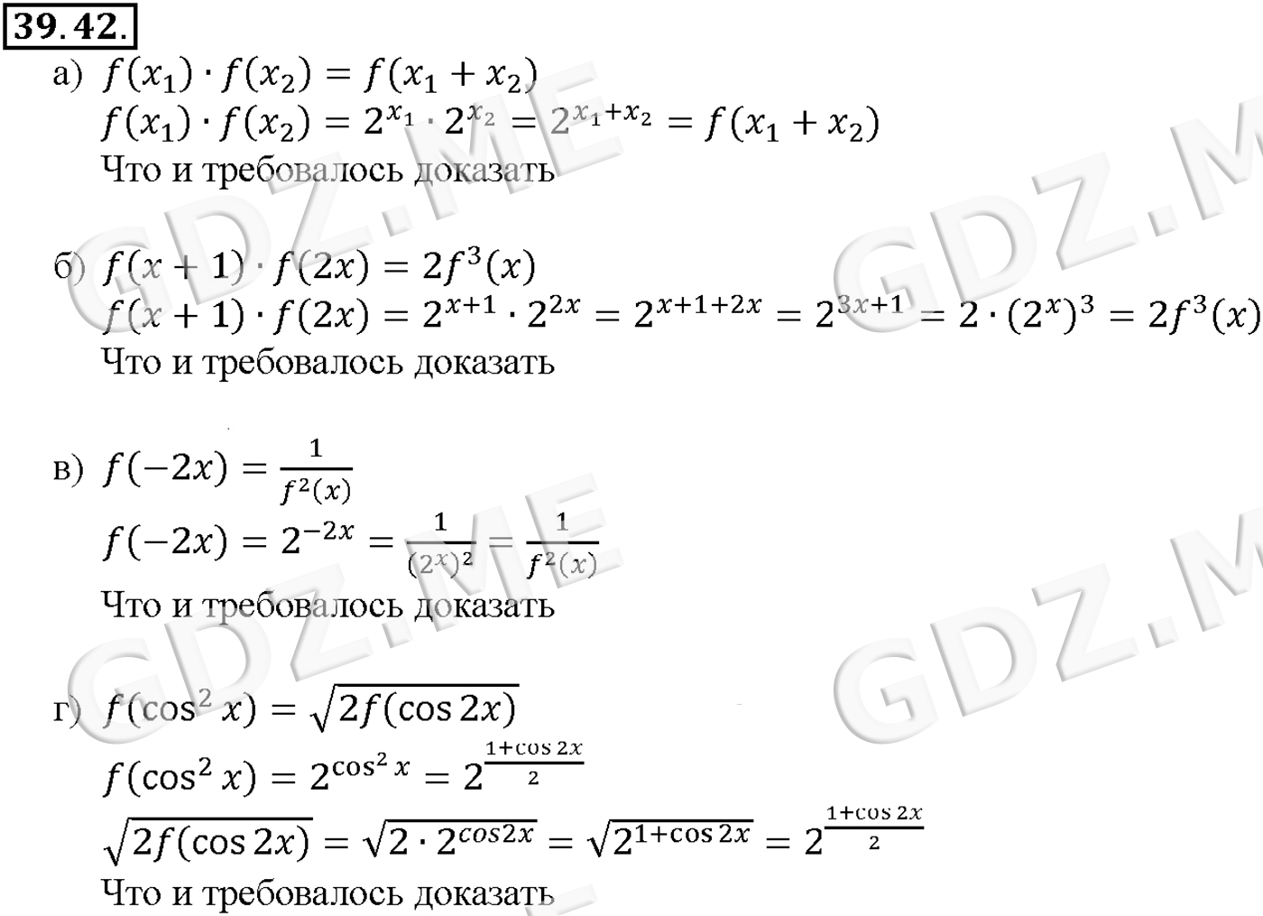 Подробный вариант решения из решебника (ГДЗ): Задание номер 39-42 (Глава 6 Степени и корни. Степенные функции. Глава 7 Показательная и логарифмическая функции. §39. Показательная функция, ее свойства и график) по предмету Алгебра, за 10 класс, авторы учебника Мордкович, Александрова.