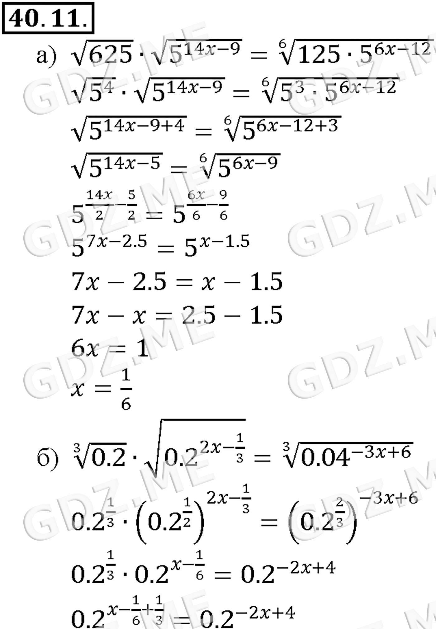 Подробный вариант решения из решебника (ГДЗ): Задание номер 40-11_1 (Глава 6 Степени и корни. Степенные функции. Глава 7 Показательная и логарифмическая функции. §40. Показательные уравнения и неравенства) по предмету Алгебра, за 10 класс, авторы учебника Мордкович, Александрова.
