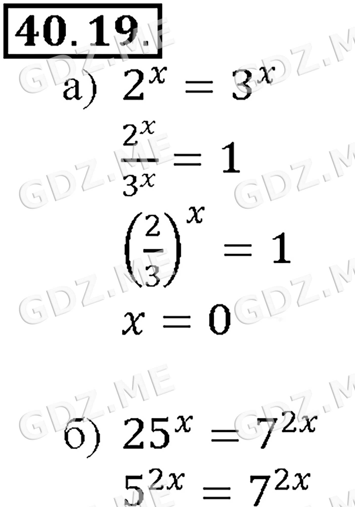 Подробный вариант решения из решебника (ГДЗ): Задание номер 40-19_1 (Глава 6 Степени и корни. Степенные функции. Глава 7 Показательная и логарифмическая функции. §40. Показательные уравнения и неравенства) по предмету Алгебра, за 10 класс, авторы учебника Мордкович, Александрова.