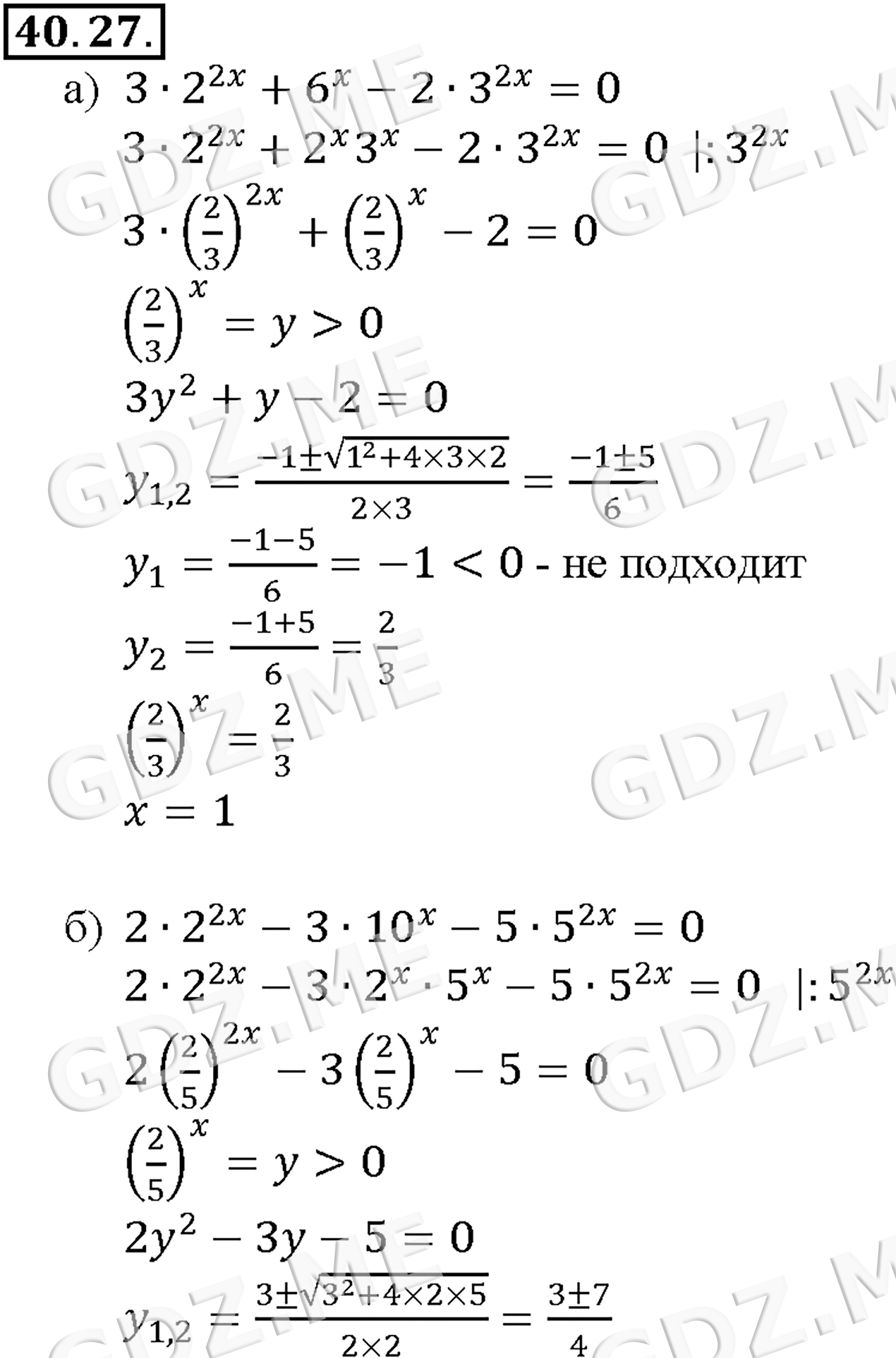 Подробный вариант решения из решебника (ГДЗ): Задание номер 40-27_1 (Глава 6 Степени и корни. Степенные функции. Глава 7 Показательная и логарифмическая функции. §40. Показательные уравнения и неравенства) по предмету Алгебра, за 10 класс, авторы учебника Мордкович, Александрова.