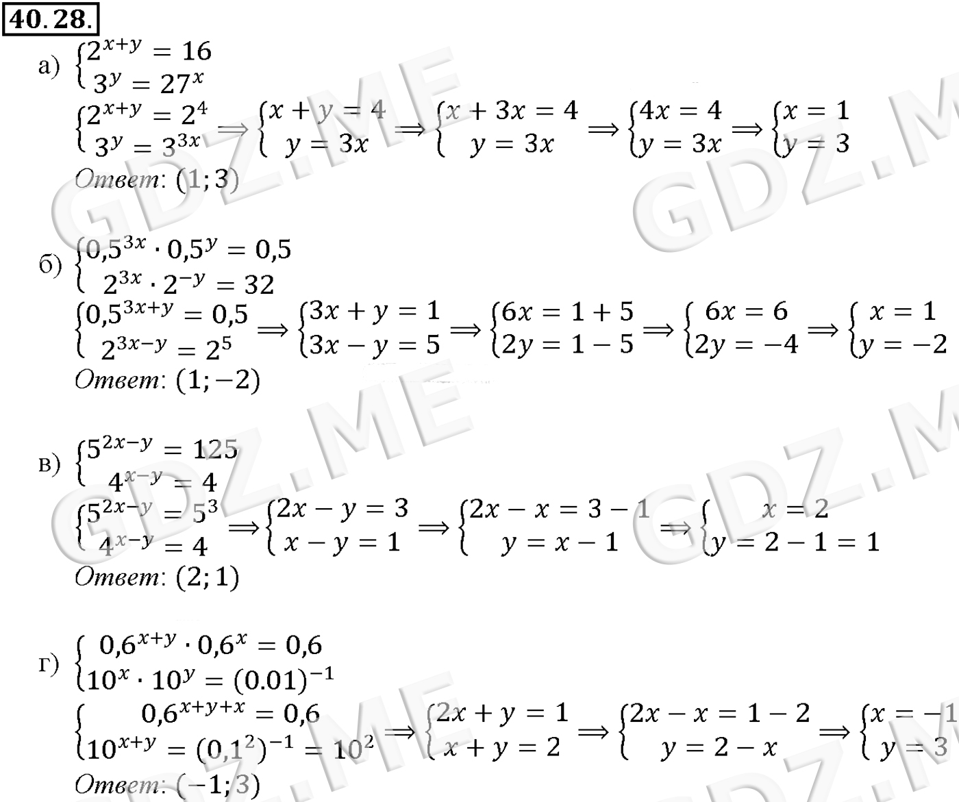 Подробный вариант решения из решебника (ГДЗ): Задание номер 40-28 (Глава 6 Степени и корни. Степенные функции. Глава 7 Показательная и логарифмическая функции. §40. Показательные уравнения и неравенства) по предмету Алгебра, за 10 класс, авторы учебника Мордкович, Александрова.