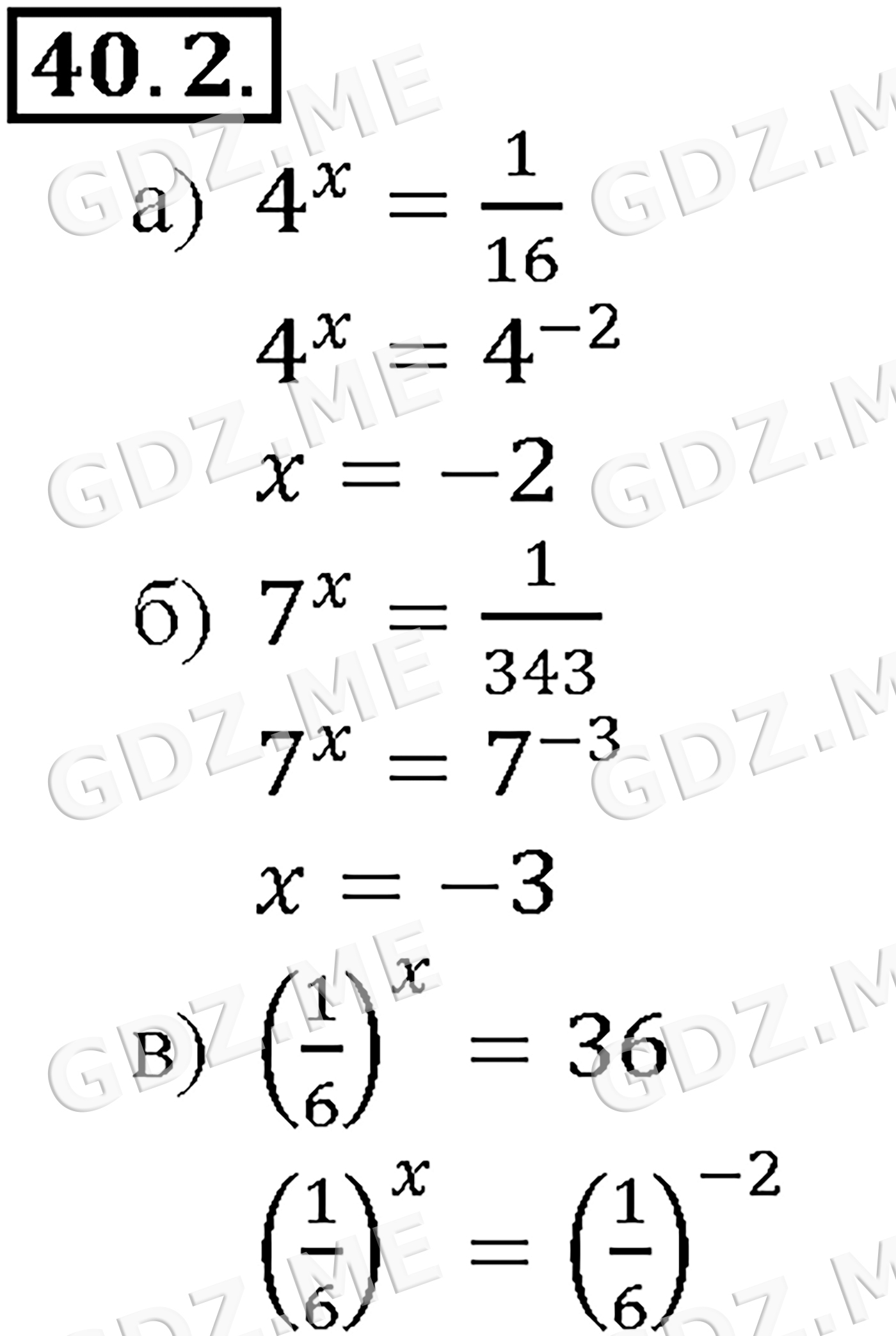 Подробный вариант решения из решебника (ГДЗ): Задание номер 40-2_1 (Глава 6 Степени и корни. Степенные функции. Глава 7 Показательная и логарифмическая функции. §40. Показательные уравнения и неравенства) по предмету Алгебра, за 10 класс, авторы учебника Мордкович, Александрова.