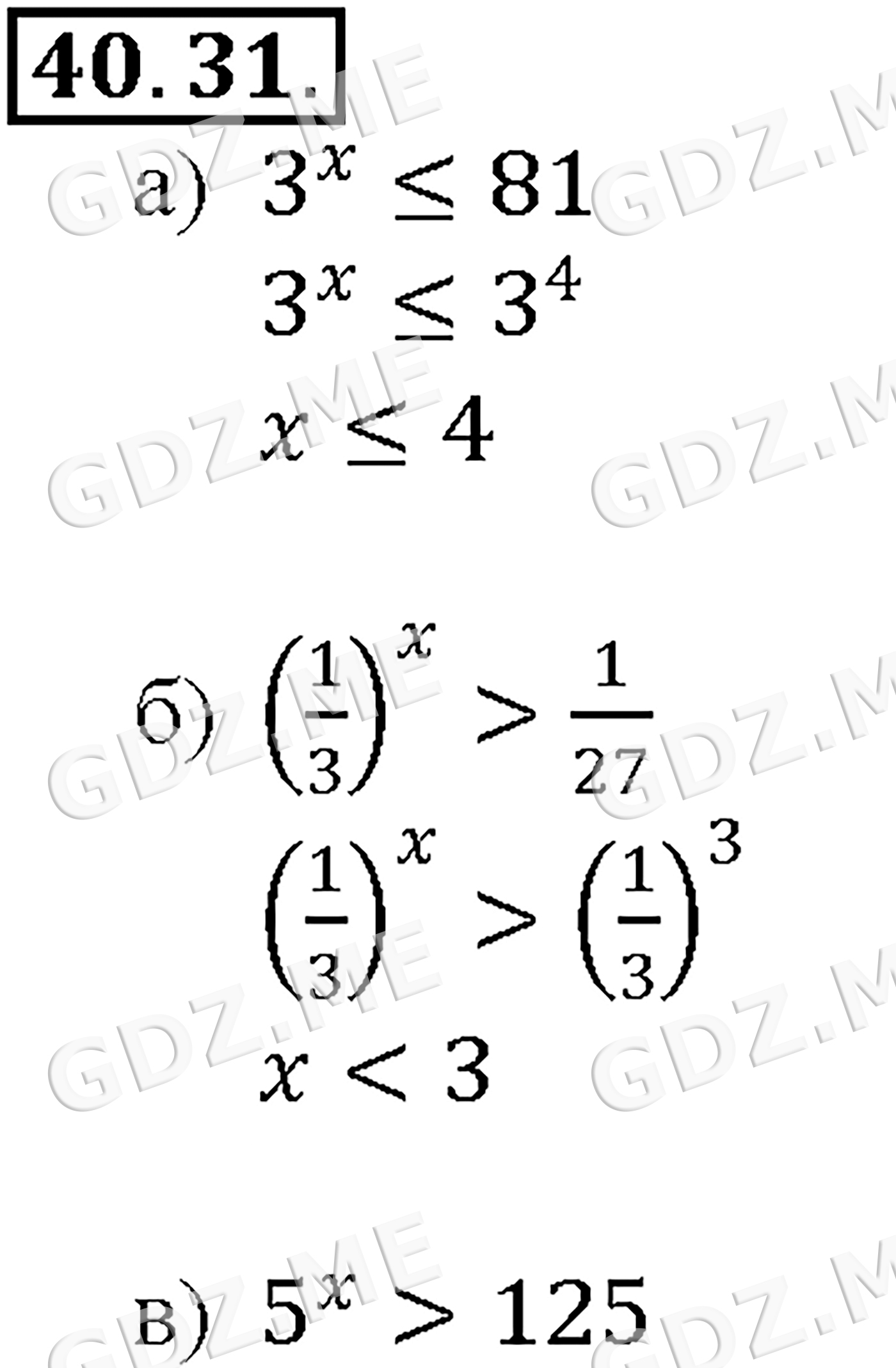 Подробный вариант решения из решебника (ГДЗ): Задание номер 40-31_1 (Глава 6 Степени и корни. Степенные функции. Глава 7 Показательная и логарифмическая функции. §40. Показательные уравнения и неравенства) по предмету Алгебра, за 10 класс, авторы учебника Мордкович, Александрова.