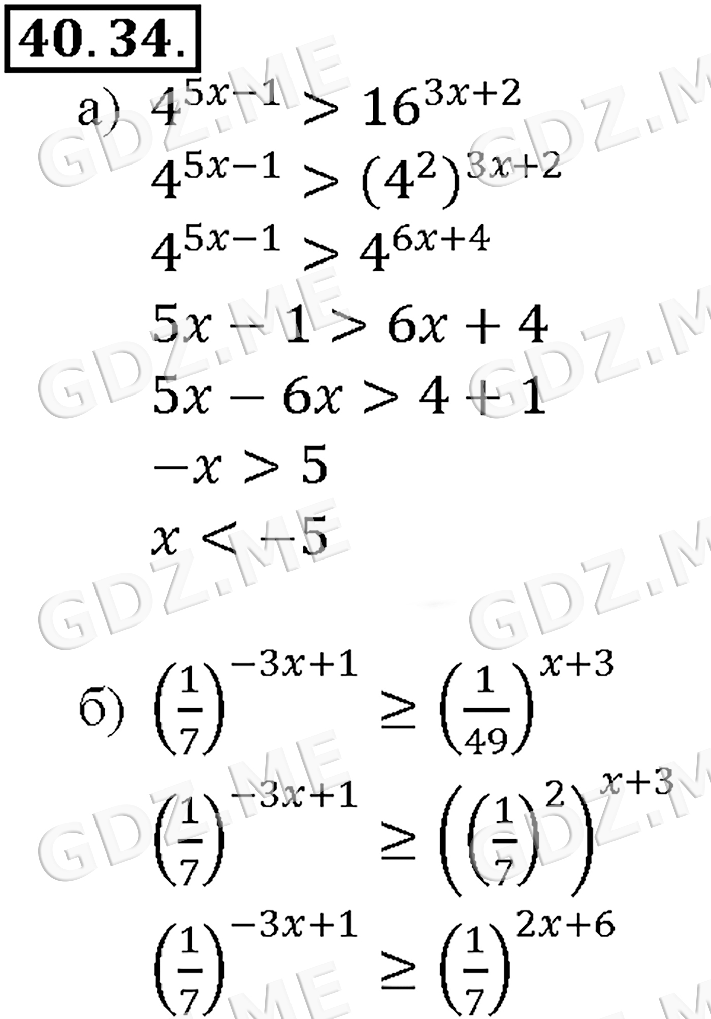 Подробный вариант решения из решебника (ГДЗ): Задание номер 40-34_1 (Глава 6 Степени и корни. Степенные функции. Глава 7 Показательная и логарифмическая функции. §40. Показательные уравнения и неравенства) по предмету Алгебра, за 10 класс, авторы учебника Мордкович, Александрова.