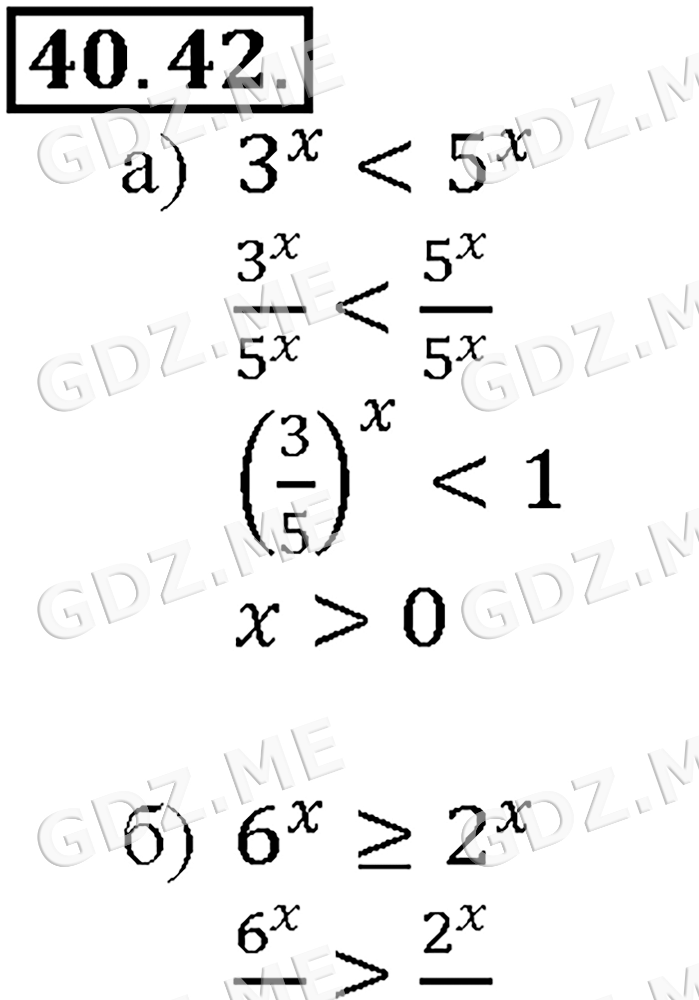 Подробный вариант решения из решебника (ГДЗ): Задание номер 40-42_1 (Глава 6 Степени и корни. Степенные функции. Глава 7 Показательная и логарифмическая функции. §40. Показательные уравнения и неравенства) по предмету Алгебра, за 10 класс, авторы учебника Мордкович, Александрова.