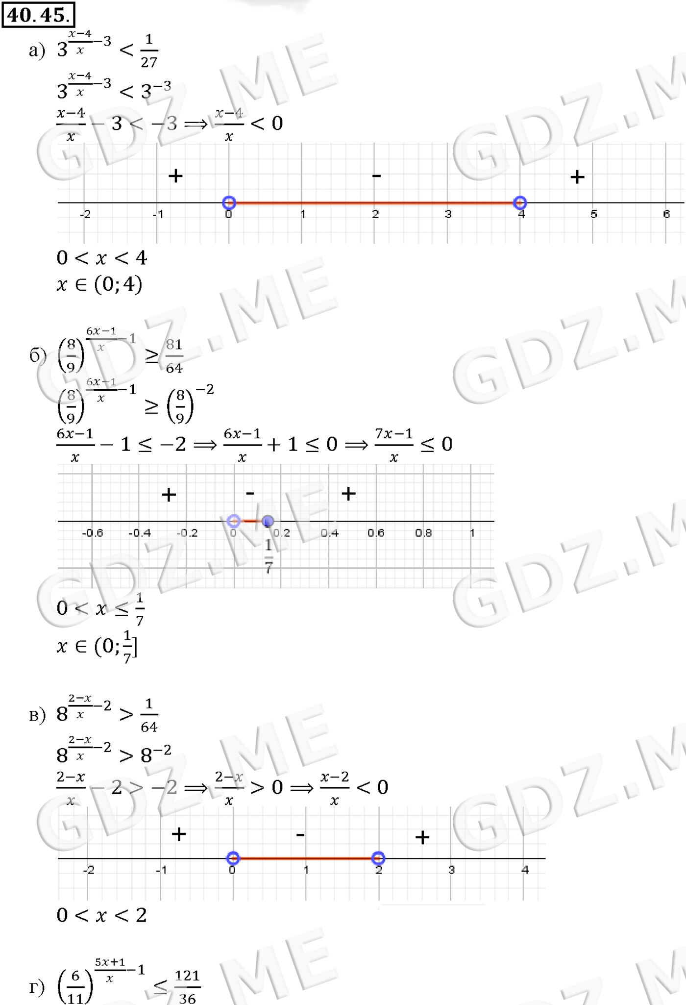 Подробный вариант решения из решебника (ГДЗ): Задание номер 40-45_1 (Глава 6 Степени и корни. Степенные функции. Глава 7 Показательная и логарифмическая функции. §40. Показательные уравнения и неравенства) по предмету Алгебра, за 10 класс, авторы учебника Мордкович, Александрова.