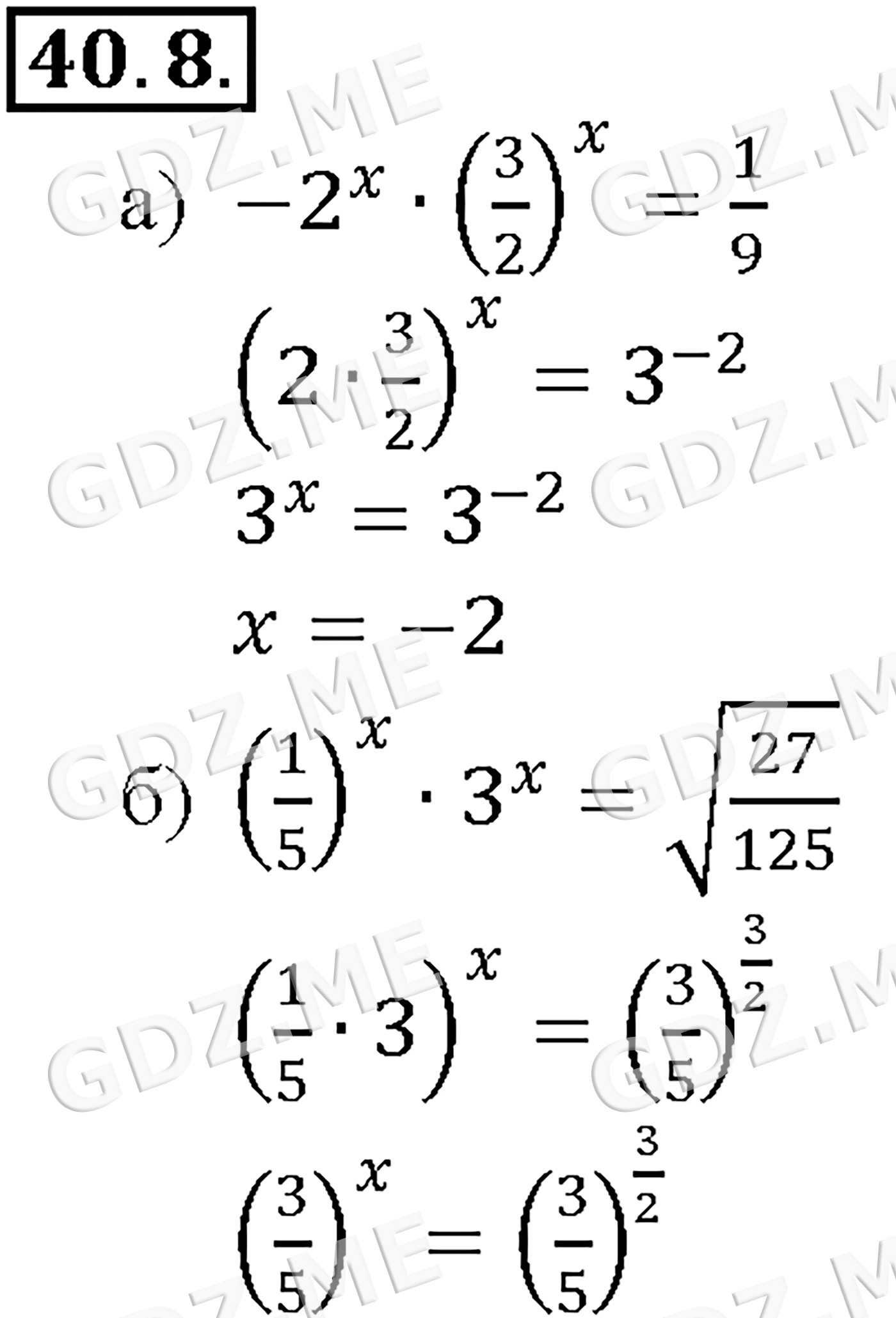 Подробный вариант решения из решебника (ГДЗ): Задание номер 40-8_1 (Глава 6 Степени и корни. Степенные функции. Глава 7 Показательная и логарифмическая функции. §40. Показательные уравнения и неравенства) по предмету Алгебра, за 10 класс, авторы учебника Мордкович, Александрова.