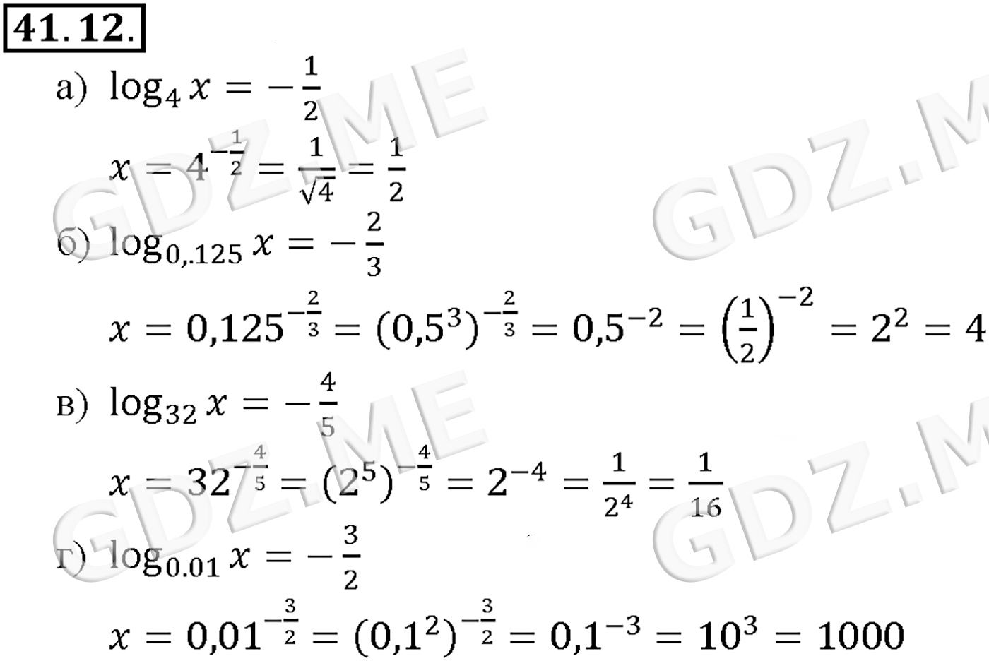 Подробный вариант решения из решебника (ГДЗ): Задание номер 41-12 (Глава 6 Степени и корни. Степенные функции. Глава 7 Показательная и логарифмическая функции. §41. Понятие логарифма) по предмету Алгебра, за 10 класс, авторы учебника Мордкович, Александрова.