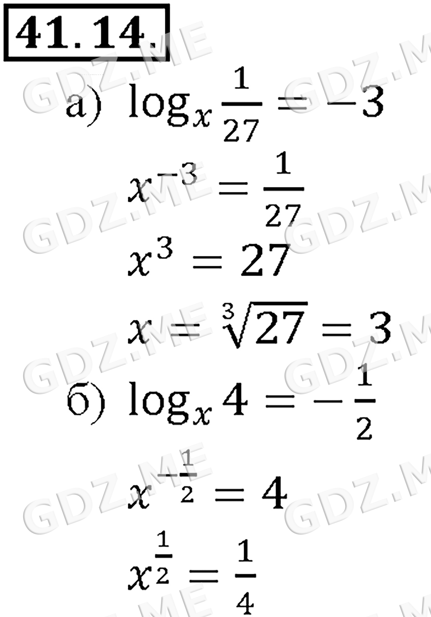 Подробный вариант решения из решебника (ГДЗ): Задание номер 41-14_1 (Глава 6 Степени и корни. Степенные функции. Глава 7 Показательная и логарифмическая функции. §41. Понятие логарифма) по предмету Алгебра, за 10 класс, авторы учебника Мордкович, Александрова.