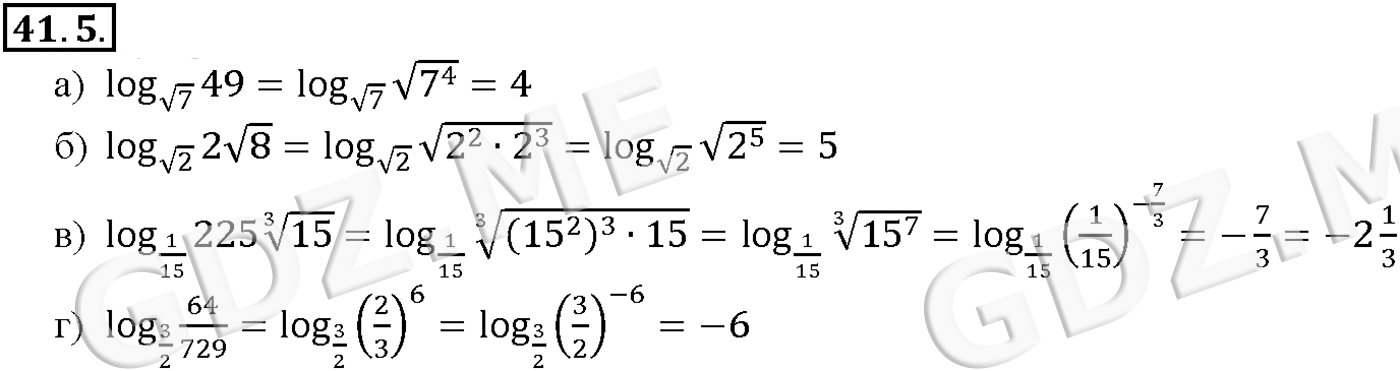 Подробный вариант решения из решебника (ГДЗ): Задание номер 41-5 (Глава 6 Степени и корни. Степенные функции. Глава 7 Показательная и логарифмическая функции. §41. Понятие логарифма) по предмету Алгебра, за 10 класс, авторы учебника Мордкович, Александрова.