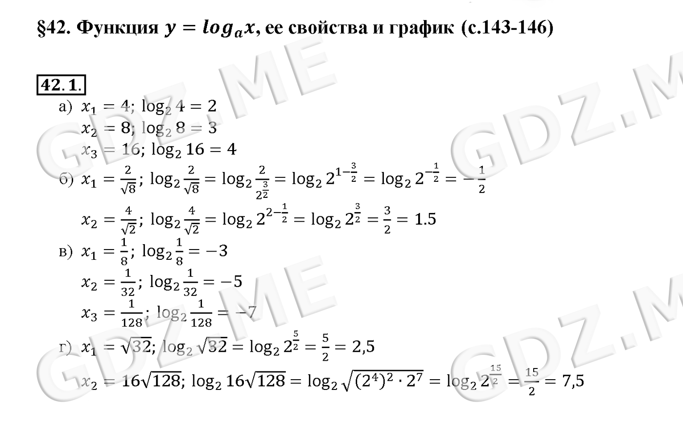 Подробный вариант решения из решебника (ГДЗ): Задание номер 42-1 (Глава 6 Степени и корни. Степенные функции. Глава 7 Показательная и логарифмическая функции. §42. Функция у = log a x, ее свойства и график) по предмету Алгебра, за 10 класс, авторы учебника Мордкович, Александрова.