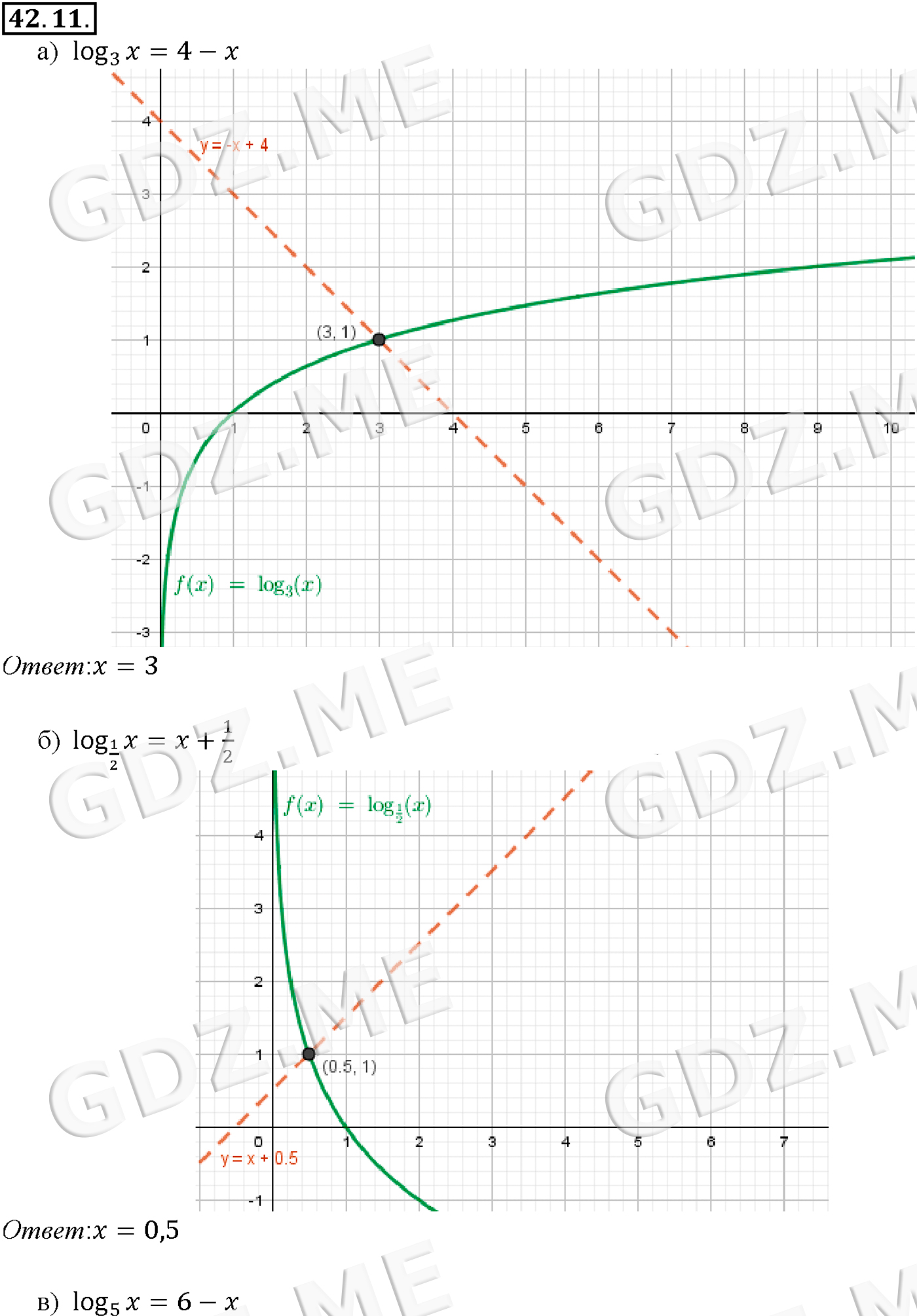 Подробный вариант решения из решебника (ГДЗ): Задание номер 42-11_1 (Глава 6 Степени и корни. Степенные функции. Глава 7 Показательная и логарифмическая функции. §42. Функция у = log a x, ее свойства и график) по предмету Алгебра, за 10 класс, авторы учебника Мордкович, Александрова.