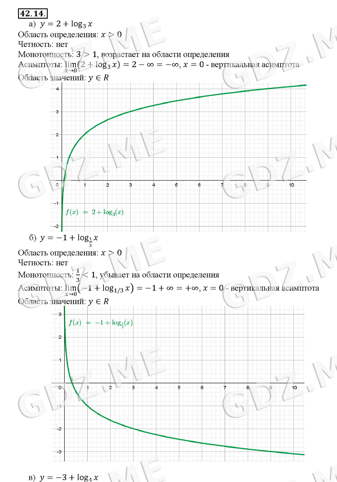 Подробный вариант решения из решебника (ГДЗ): Задание номер 42-14_1 (Глава 6 Степени и корни. Степенные функции. Глава 7 Показательная и логарифмическая функции. §42. Функция у = log a x, ее свойства и график) по предмету Алгебра, за 10 класс, авторы учебника Мордкович, Александрова.