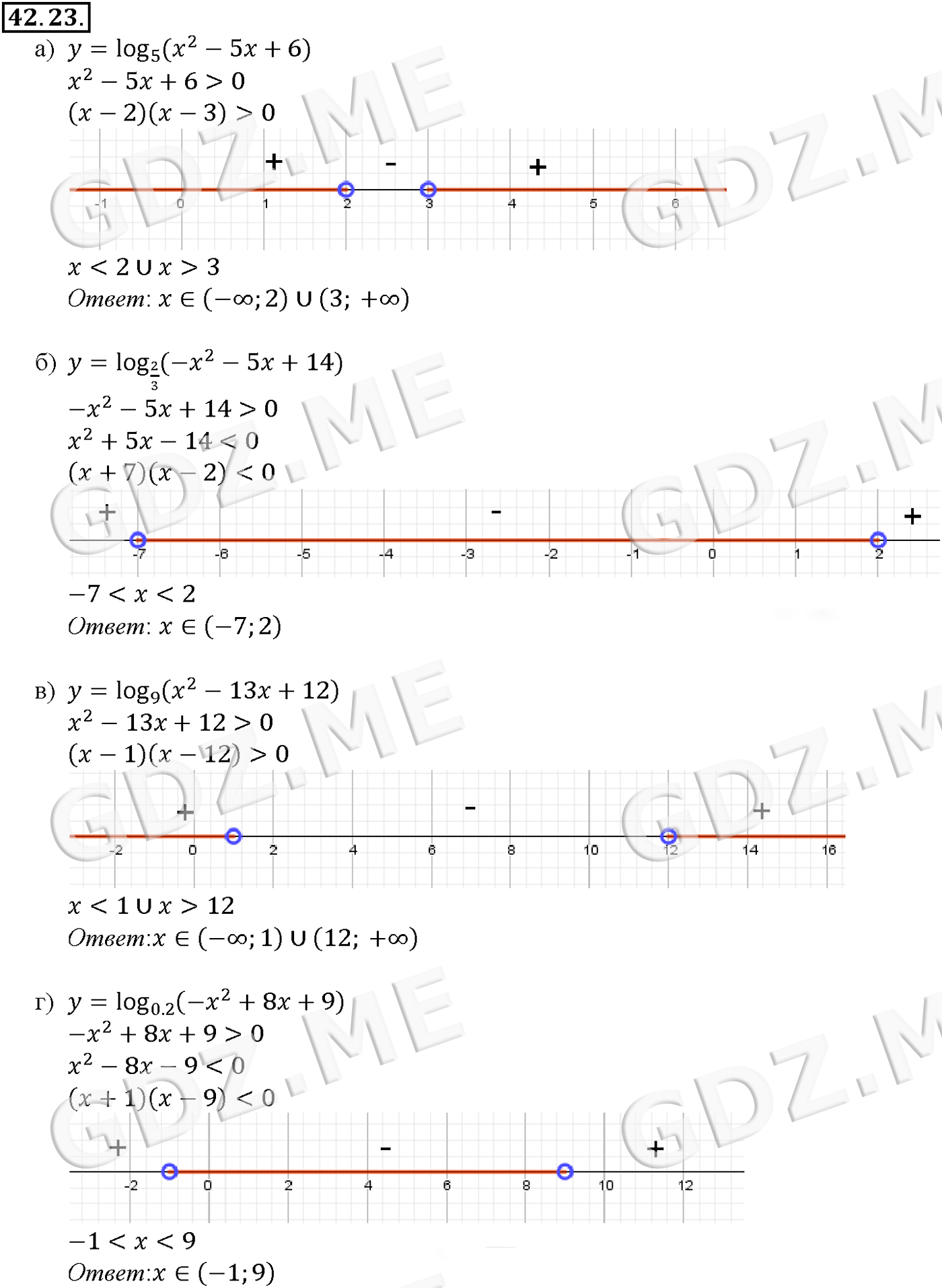 Подробный вариант решения из решебника (ГДЗ): Задание номер 42-23 (Глава 6 Степени и корни. Степенные функции. Глава 7 Показательная и логарифмическая функции. §42. Функция у = log a x, ее свойства и график) по предмету Алгебра, за 10 класс, авторы учебника Мордкович, Александрова.