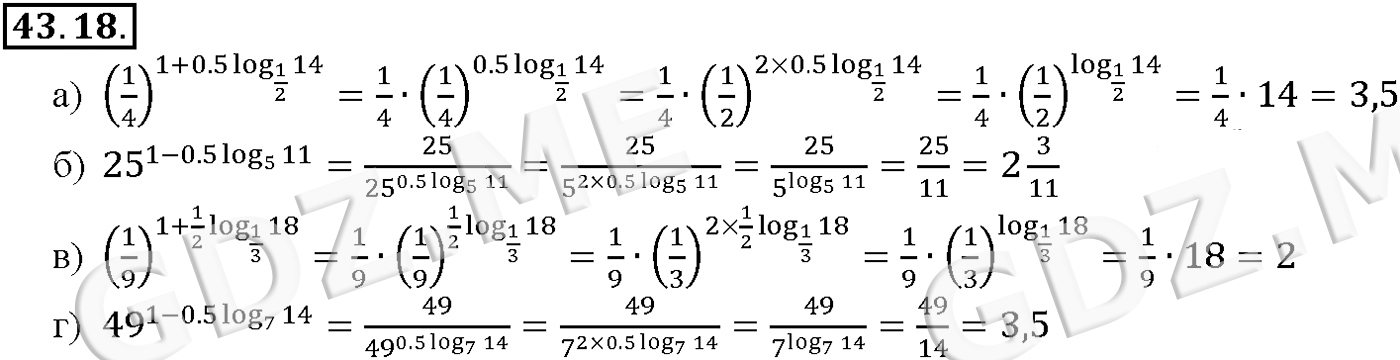 Подробный вариант решения из решебника (ГДЗ): Задание номер 43-18 (Глава 6 Степени и корни. Степенные функции. Глава 7 Показательная и логарифмическая функции. §43. Свойства логарифмов) по предмету Алгебра, за 10 класс, авторы учебника Мордкович, Александрова.