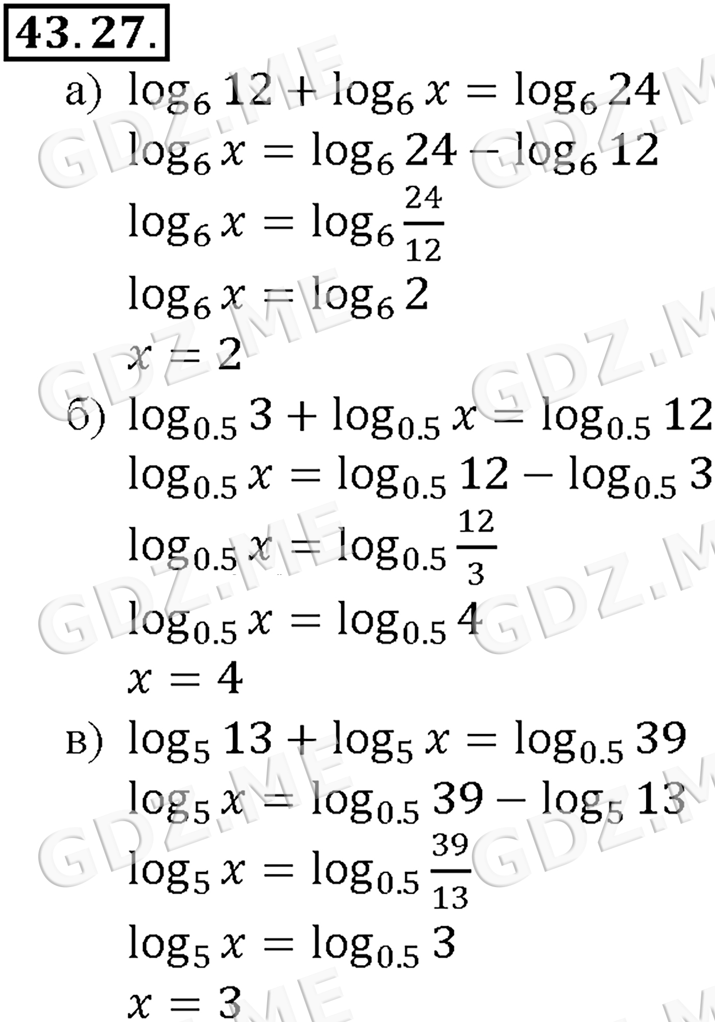 Подробный вариант решения из решебника (ГДЗ): Задание номер 43-27_1 (Глава 6 Степени и корни. Степенные функции. Глава 7 Показательная и логарифмическая функции. §43. Свойства логарифмов) по предмету Алгебра, за 10 класс, авторы учебника Мордкович, Александрова.