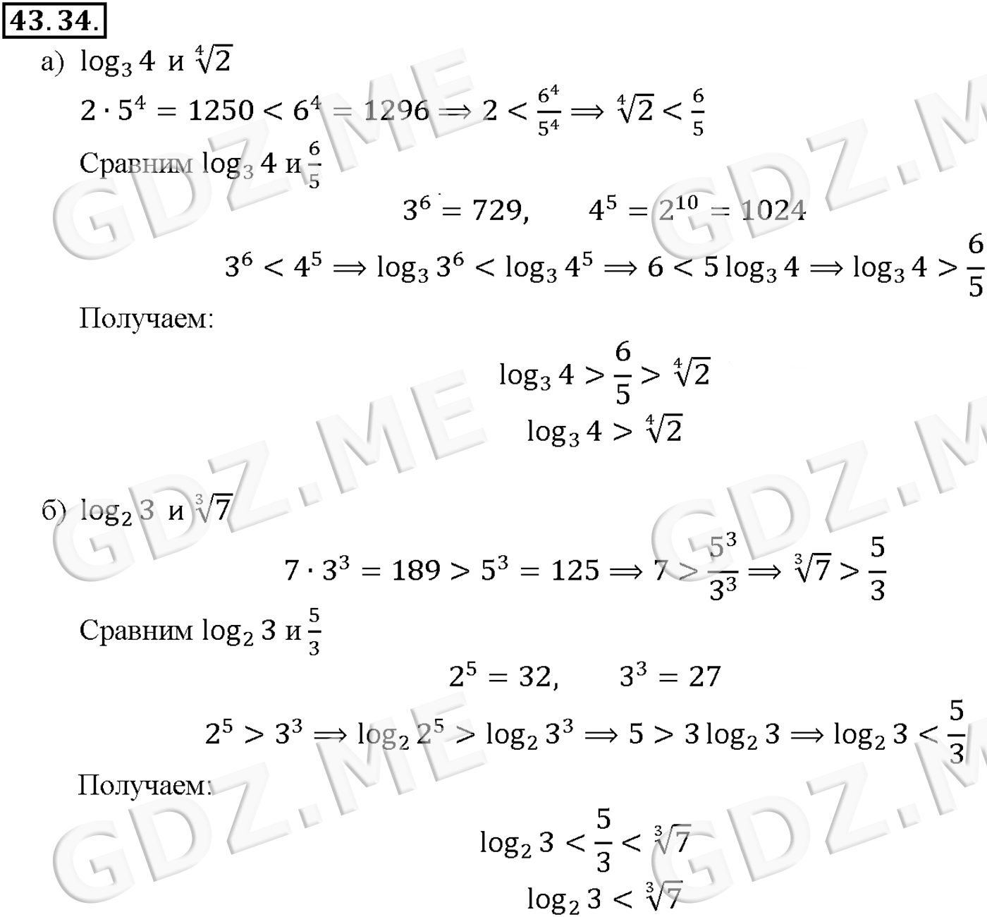 Подробный вариант решения из решебника (ГДЗ): Задание номер 43-34 (Глава 6 Степени и корни. Степенные функции. Глава 7 Показательная и логарифмическая функции. §43. Свойства логарифмов) по предмету Алгебра, за 10 класс, авторы учебника Мордкович, Александрова.