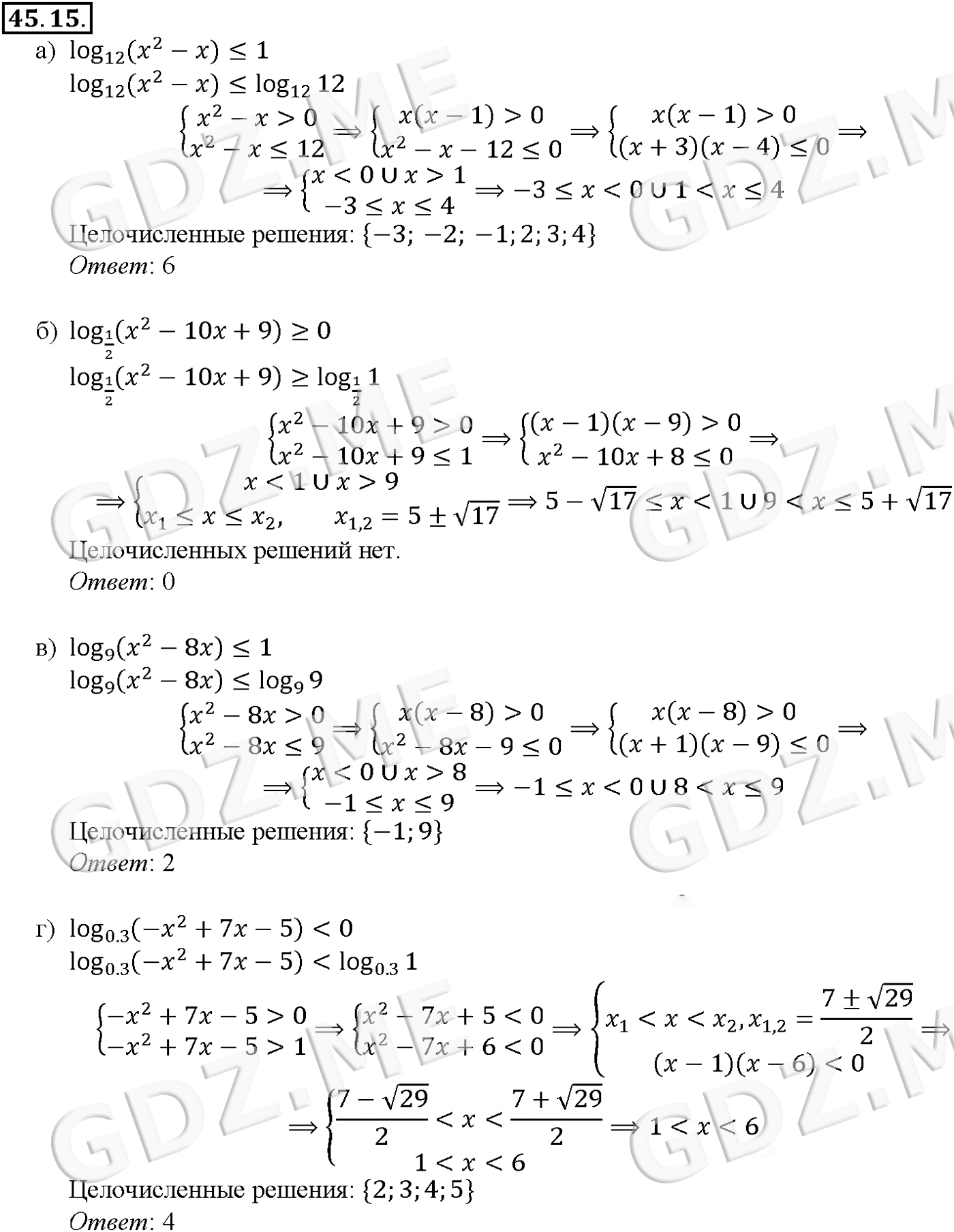 Подробный вариант решения из решебника (ГДЗ): Задание номер 45-15 (Глава 6 Степени и корни. Степенные функции. Глава 7 Показательная и логарифмическая функции. §45. Логарифмические неравенства) по предмету Алгебра, за 10 класс, авторы учебника Мордкович, Александрова.
