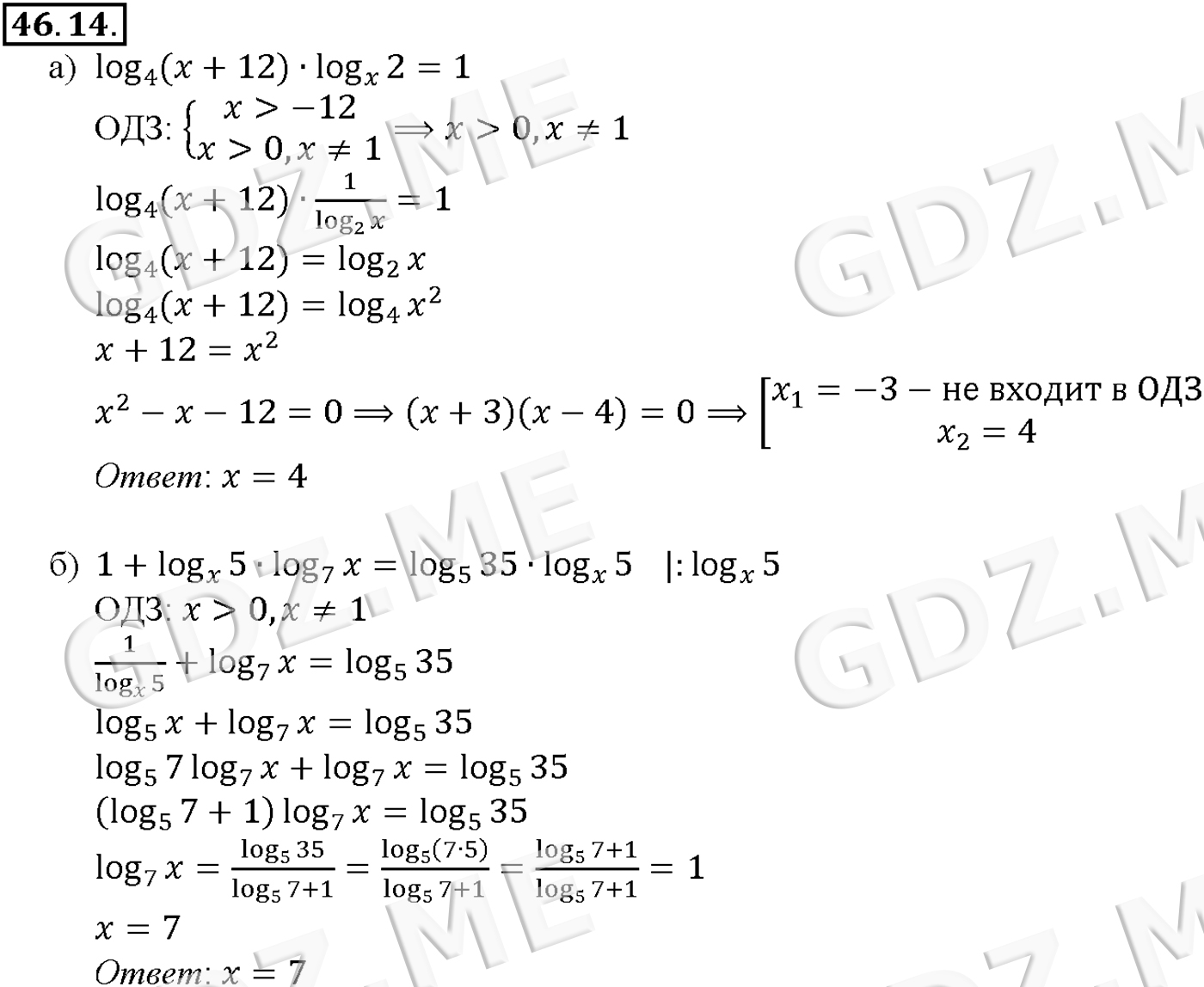 Подробный вариант решения из решебника (ГДЗ): Задание номер 46-14 (Глава 6 Степени и корни. Степенные функции. Глава 7 Показательная и логарифмическая функции. §46. Переход к новому основанию логарифма) по предмету Алгебра, за 10 класс, авторы учебника Мордкович, Александрова.