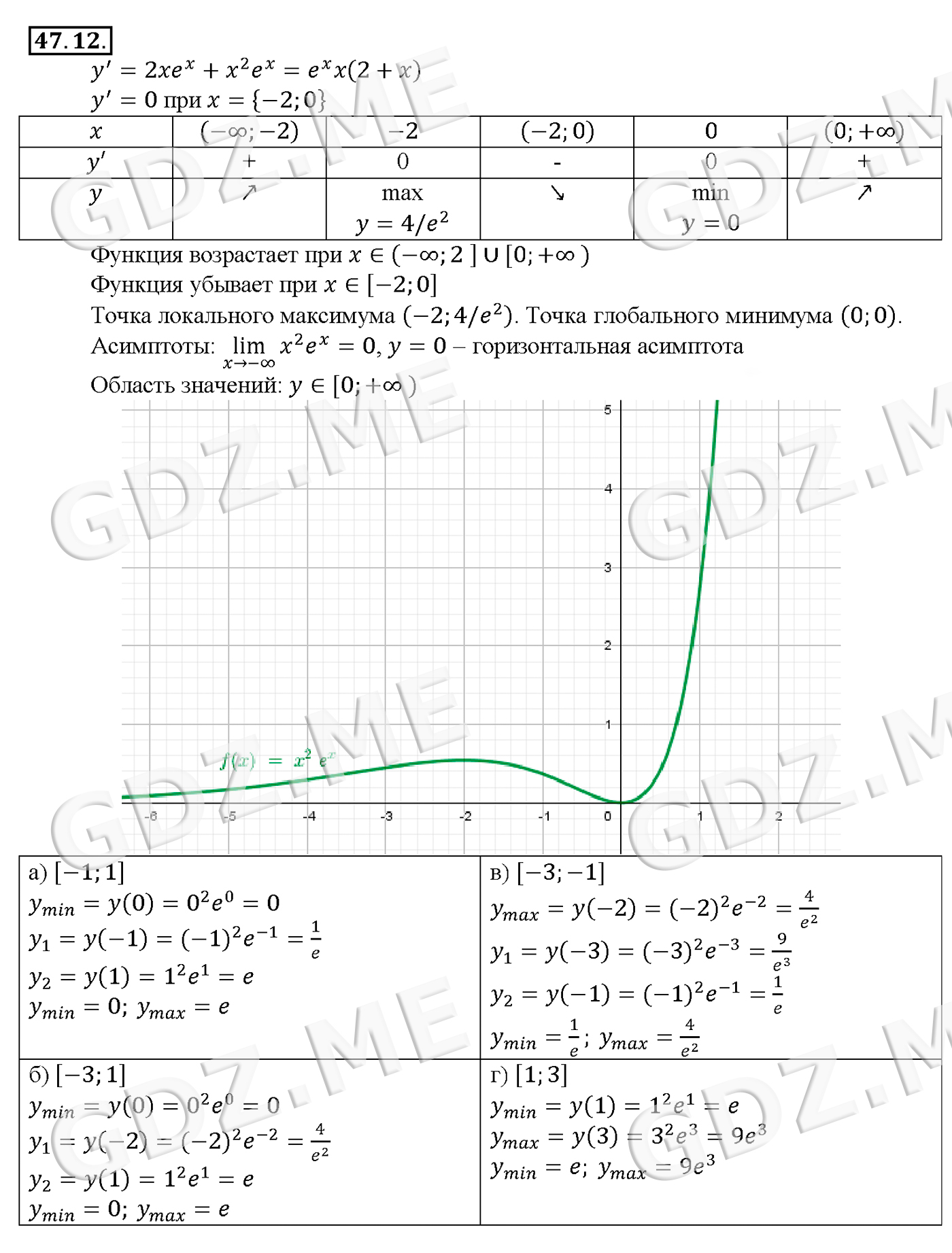 Подробный вариант решения из решебника (ГДЗ): Задание номер 47-12 (Глава 6 Степени и корни. Степенные функции. Глава 7 Показательная и логарифмическая функции. §47. Дифференцирование показательной и логарифмической функций) по предмету Алгебра, за 10 класс, авторы учебника Мордкович, Александрова.