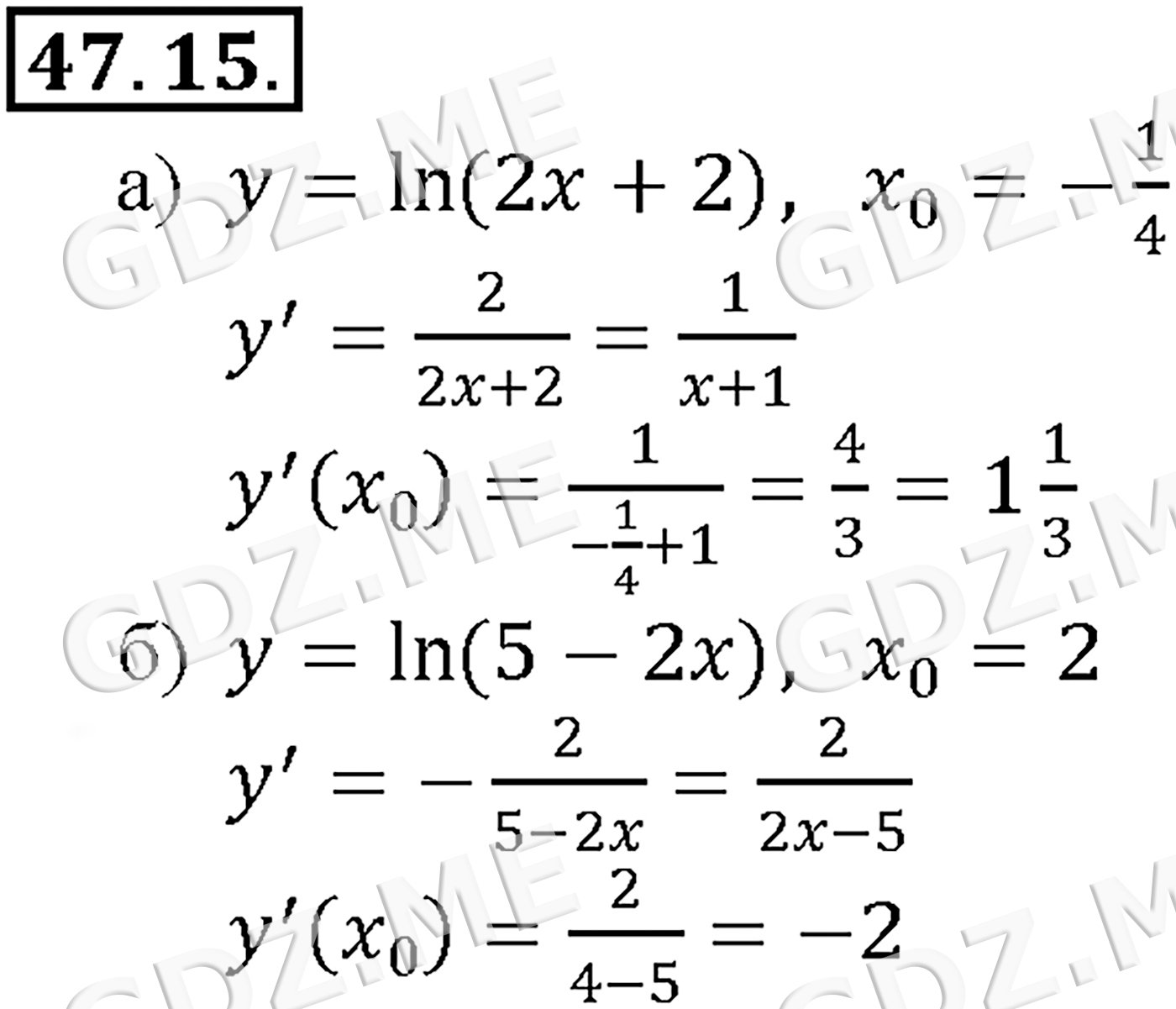 Подробный вариант решения из решебника (ГДЗ): Задание номер 47-15 (Глава 6 Степени и корни. Степенные функции. Глава 7 Показательная и логарифмическая функции. §47. Дифференцирование показательной и логарифмической функций) по предмету Алгебра, за 10 класс, авторы учебника Мордкович, Александрова.