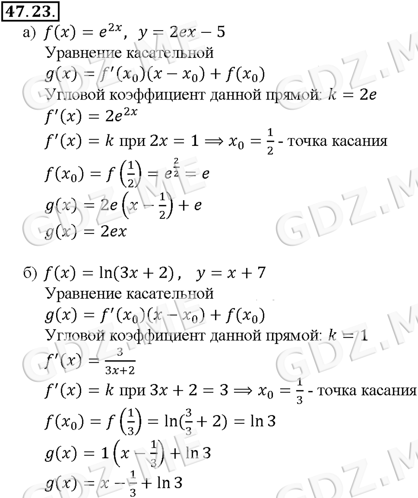 Подробный вариант решения из решебника (ГДЗ): Задание номер 47-23 (Глава 6 Степени и корни. Степенные функции. Глава 7 Показательная и логарифмическая функции. §47. Дифференцирование показательной и логарифмической функций) по предмету Алгебра, за 10 класс, авторы учебника Мордкович, Александрова.