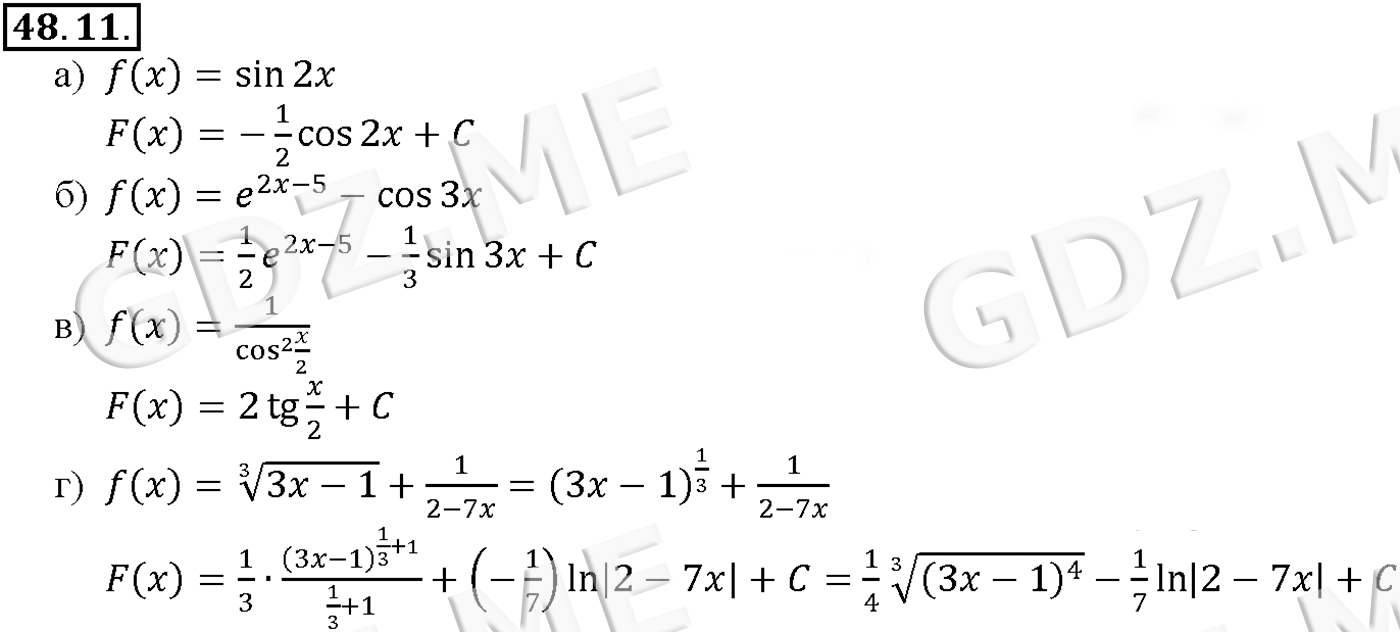 Подробный вариант решения из решебника (ГДЗ): Задание номер 48-11 (Глава 7 Показательная и логарифмическая функции. Глава 8 Первообразная и интеграл. §48. Первообразная) по предмету Алгебра, за 10 класс, авторы учебника Мордкович, Александрова.