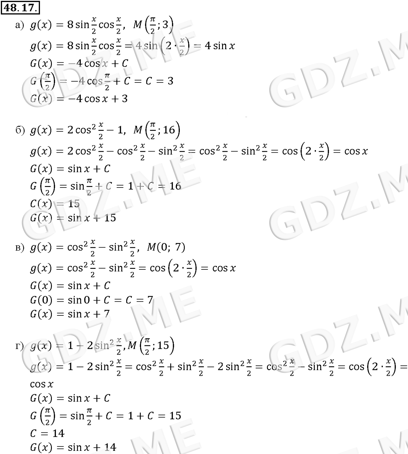 Подробный вариант решения из решебника (ГДЗ): Задание номер 48-17 (Глава 7 Показательная и логарифмическая функции. Глава 8 Первообразная и интеграл. §48. Первообразная) по предмету Алгебра, за 10 класс, авторы учебника Мордкович, Александрова.