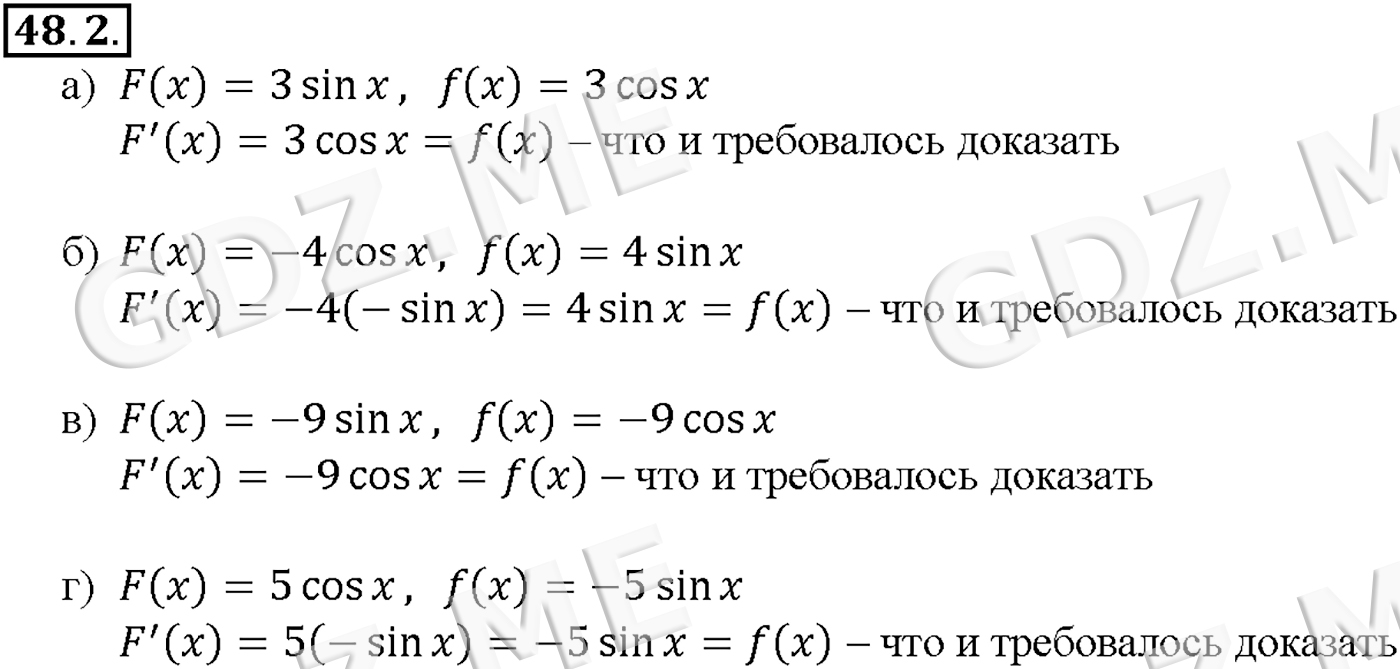Подробный вариант решения из решебника (ГДЗ): Задание номер 48-2 (Глава 7 Показательная и логарифмическая функции. Глава 8 Первообразная и интеграл. §48. Первообразная) по предмету Алгебра, за 10 класс, авторы учебника Мордкович, Александрова.