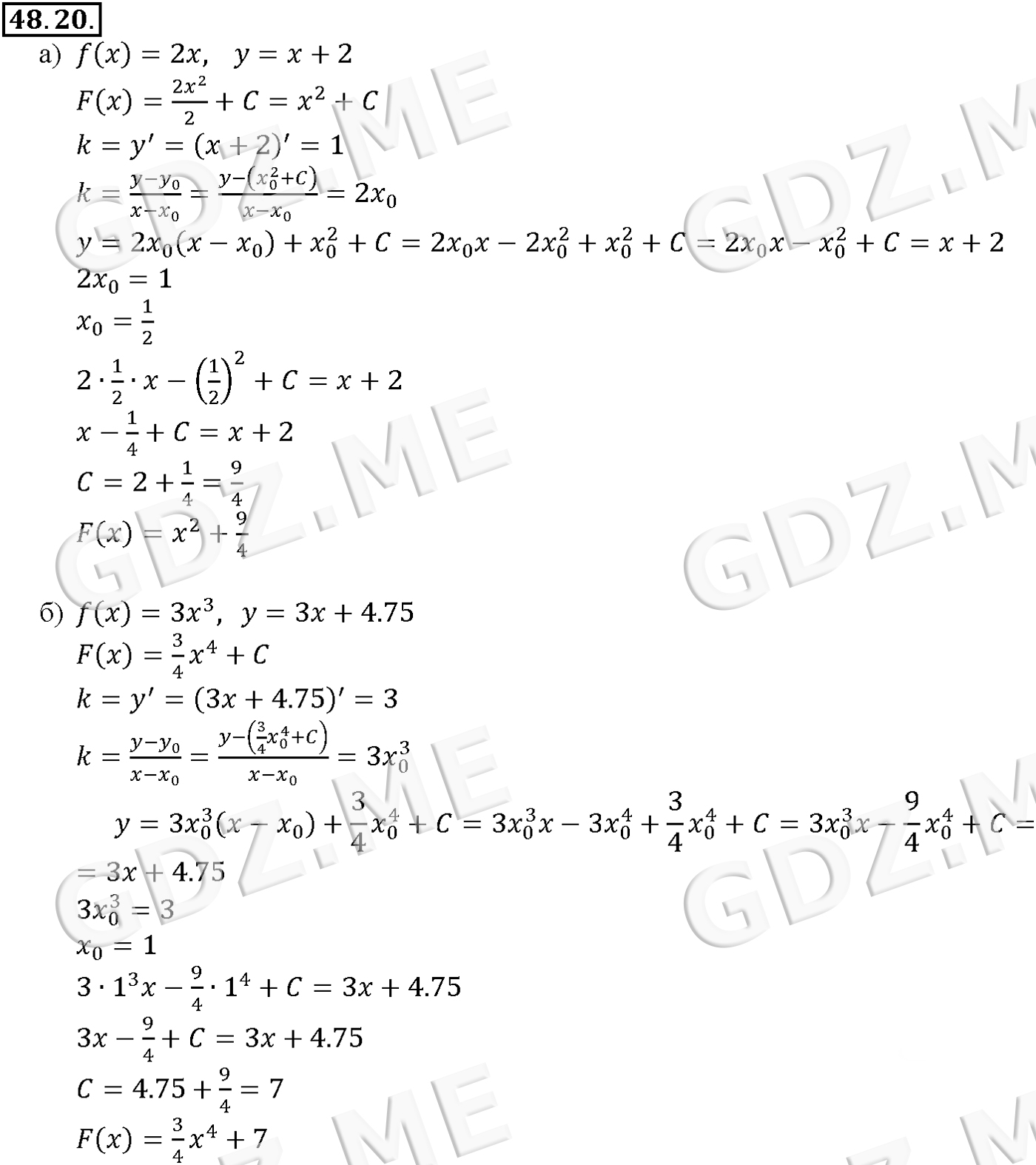 Подробный вариант решения из решебника (ГДЗ): Задание номер 48-20 (Глава 7 Показательная и логарифмическая функции. Глава 8 Первообразная и интеграл. §48. Первообразная) по предмету Алгебра, за 10 класс, авторы учебника Мордкович, Александрова.