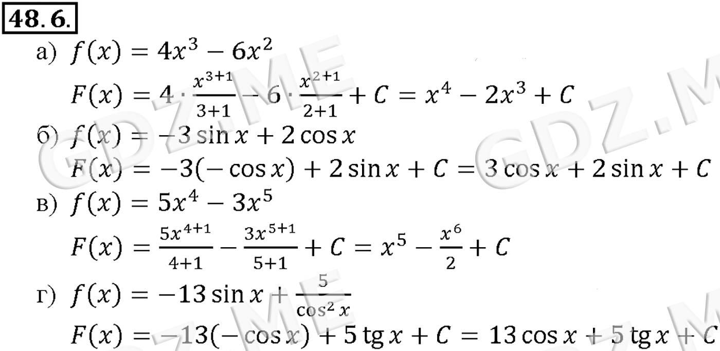 Подробный вариант решения из решебника (ГДЗ): Задание номер 48-6 (Глава 7 Показательная и логарифмическая функции. Глава 8 Первообразная и интеграл. §48. Первообразная) по предмету Алгебра, за 10 класс, авторы учебника Мордкович, Александрова.
