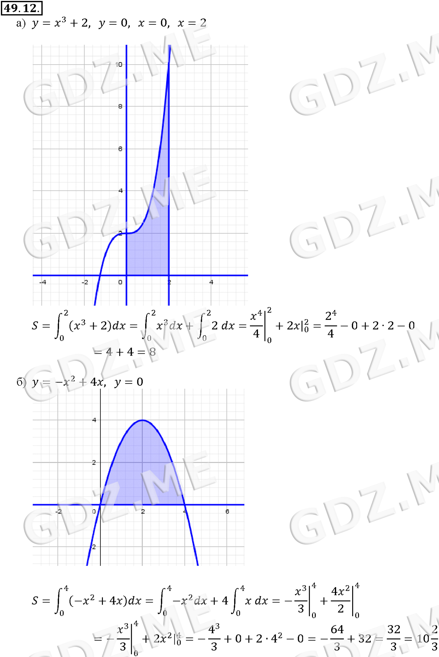 Подробный вариант решения из решебника (ГДЗ): Задание номер 49-12 (Глава 7 Показательная и логарифмическая функции. Глава 8 Первообразная и интеграл. §49. Определенный интеграл) по предмету Алгебра, за 10 класс, авторы учебника Мордкович, Александрова.