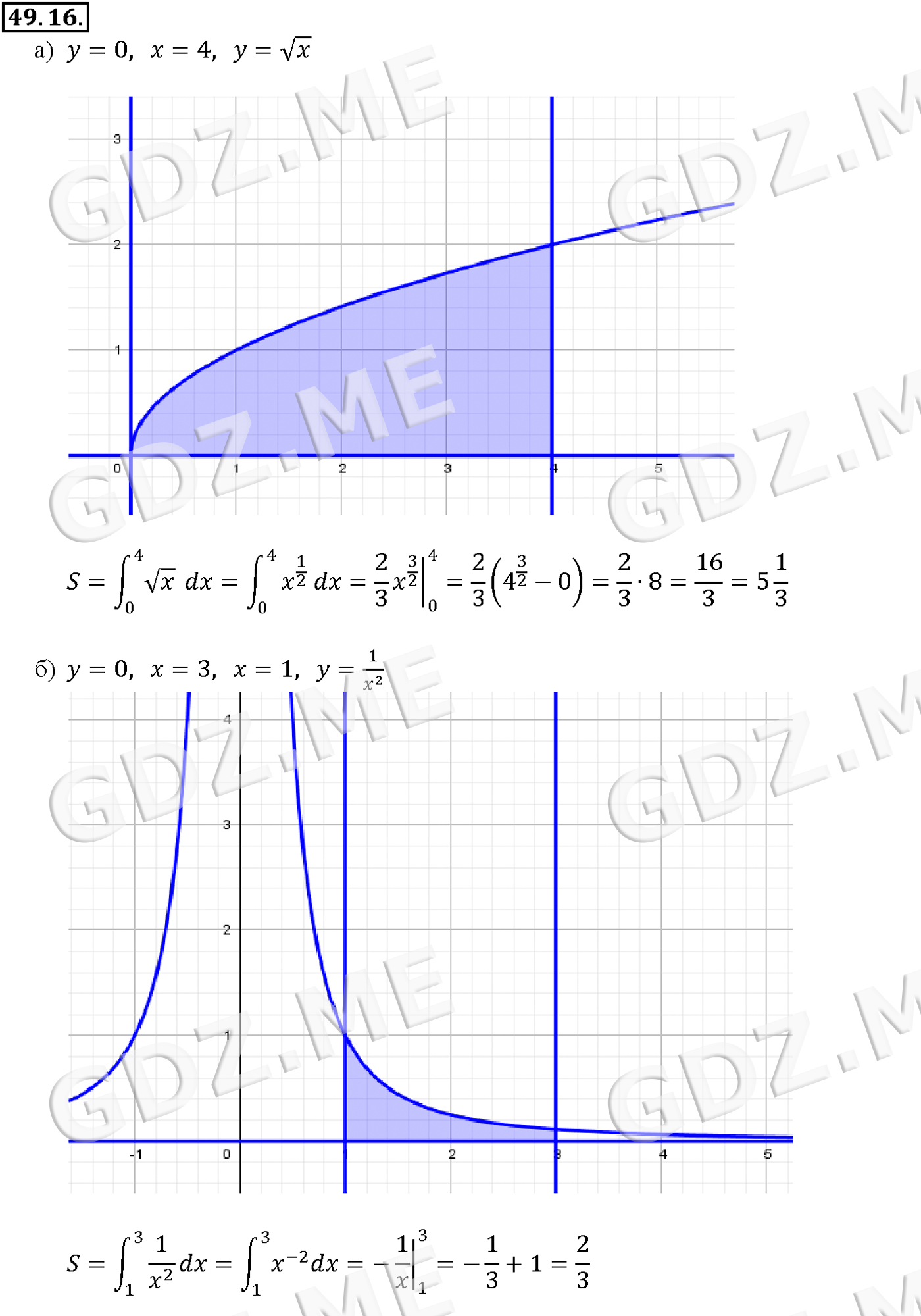 Подробный вариант решения из решебника (ГДЗ): Задание номер 49-16_1 (Глава 7 Показательная и логарифмическая функции. Глава 8 Первообразная и интеграл. §49. Определенный интеграл) по предмету Алгебра, за 10 класс, авторы учебника Мордкович, Александрова.