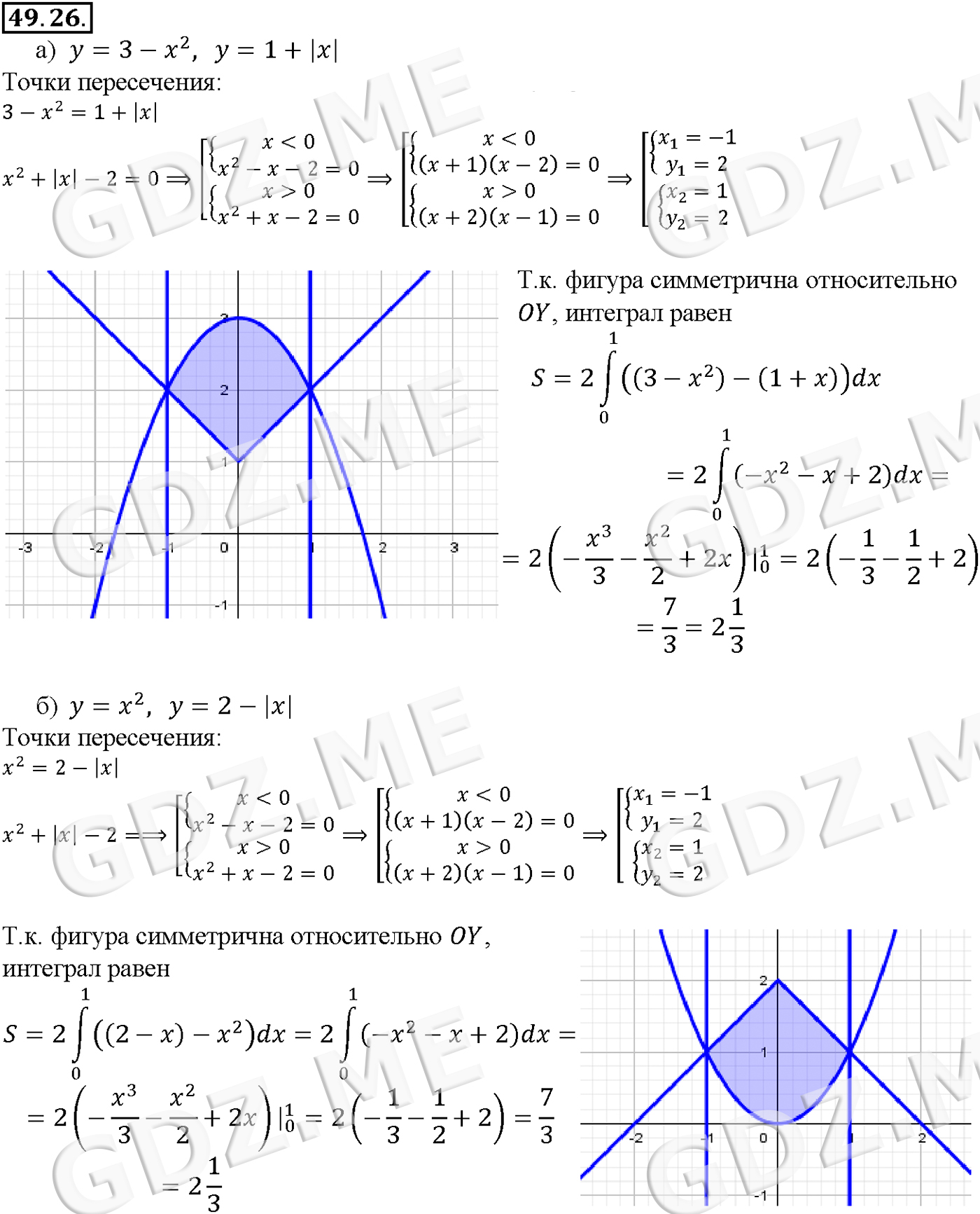 Подробный вариант решения из решебника (ГДЗ): Задание номер 49-26 (Глава 7 Показательная и логарифмическая функции. Глава 8 Первообразная и интеграл. §49. Определенный интеграл) по предмету Алгебра, за 10 класс, авторы учебника Мордкович, Александрова.