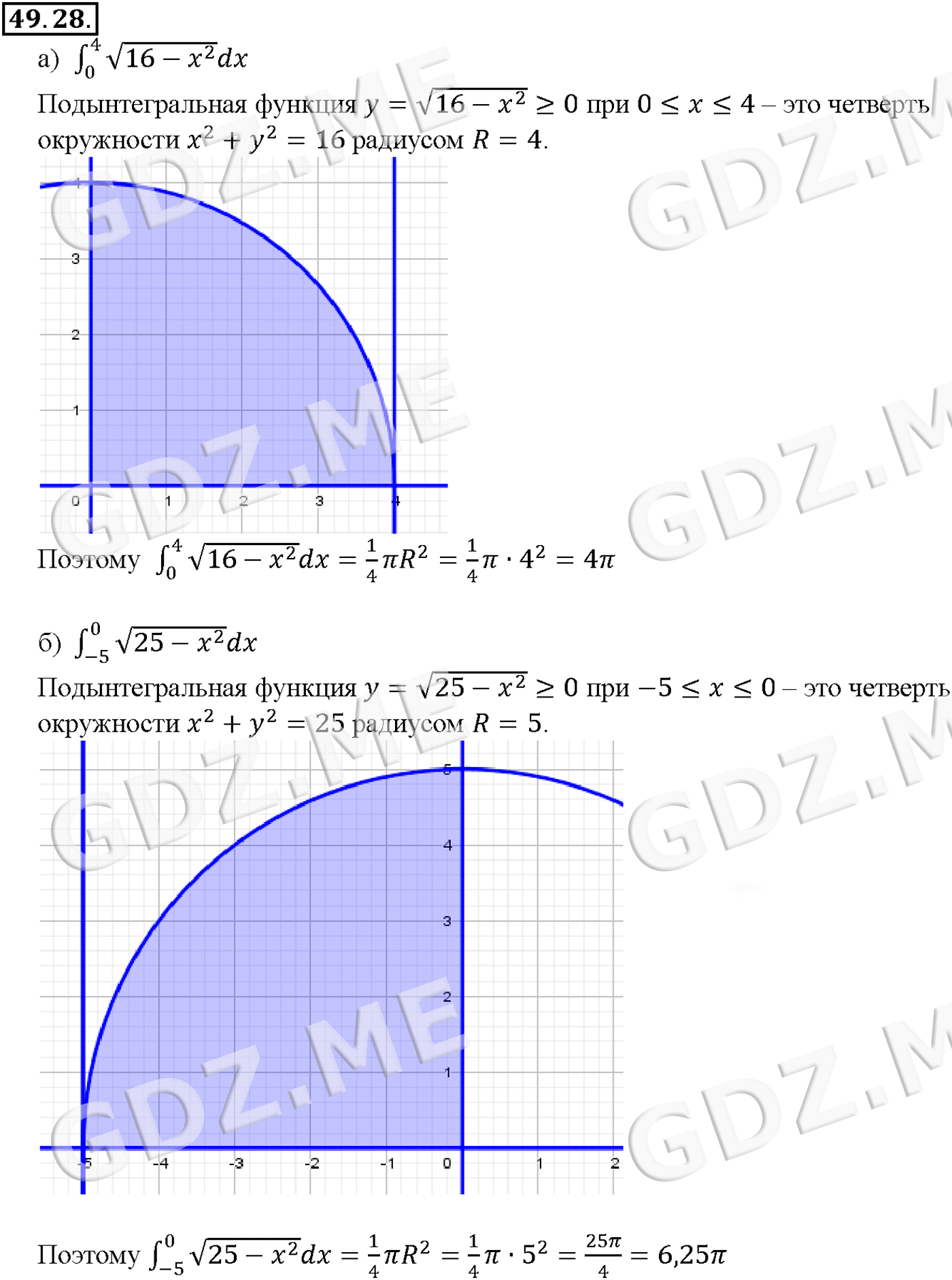 Подробный вариант решения из решебника (ГДЗ): Задание номер 49-28 (Глава 7 Показательная и логарифмическая функции. Глава 8 Первообразная и интеграл. §49. Определенный интеграл) по предмету Алгебра, за 10 класс, авторы учебника Мордкович, Александрова.