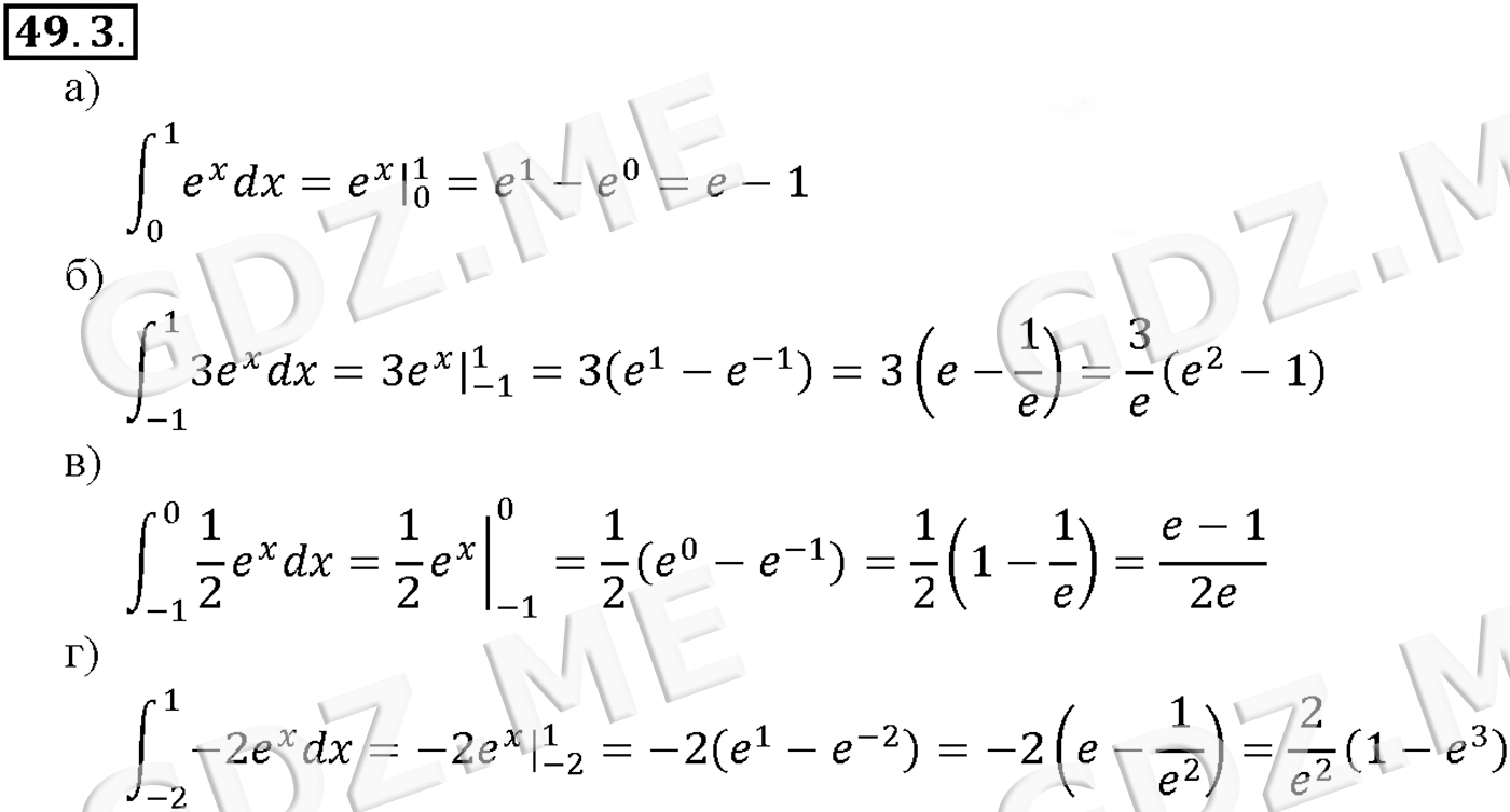 Подробный вариант решения из решебника (ГДЗ): Задание номер 49-3 (Глава 7 Показательная и логарифмическая функции. Глава 8 Первообразная и интеграл. §49. Определенный интеграл) по предмету Алгебра, за 10 класс, авторы учебника Мордкович, Александрова.