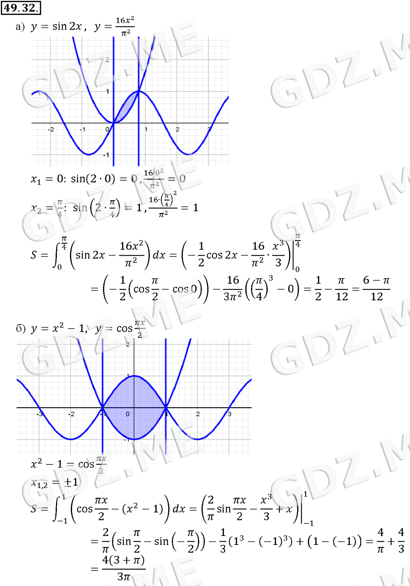 Подробный вариант решения из решебника (ГДЗ): Задание номер 49-32_1 (Глава 7 Показательная и логарифмическая функции. Глава 8 Первообразная и интеграл. §49. Определенный интеграл) по предмету Алгебра, за 10 класс, авторы учебника Мордкович, Александрова.